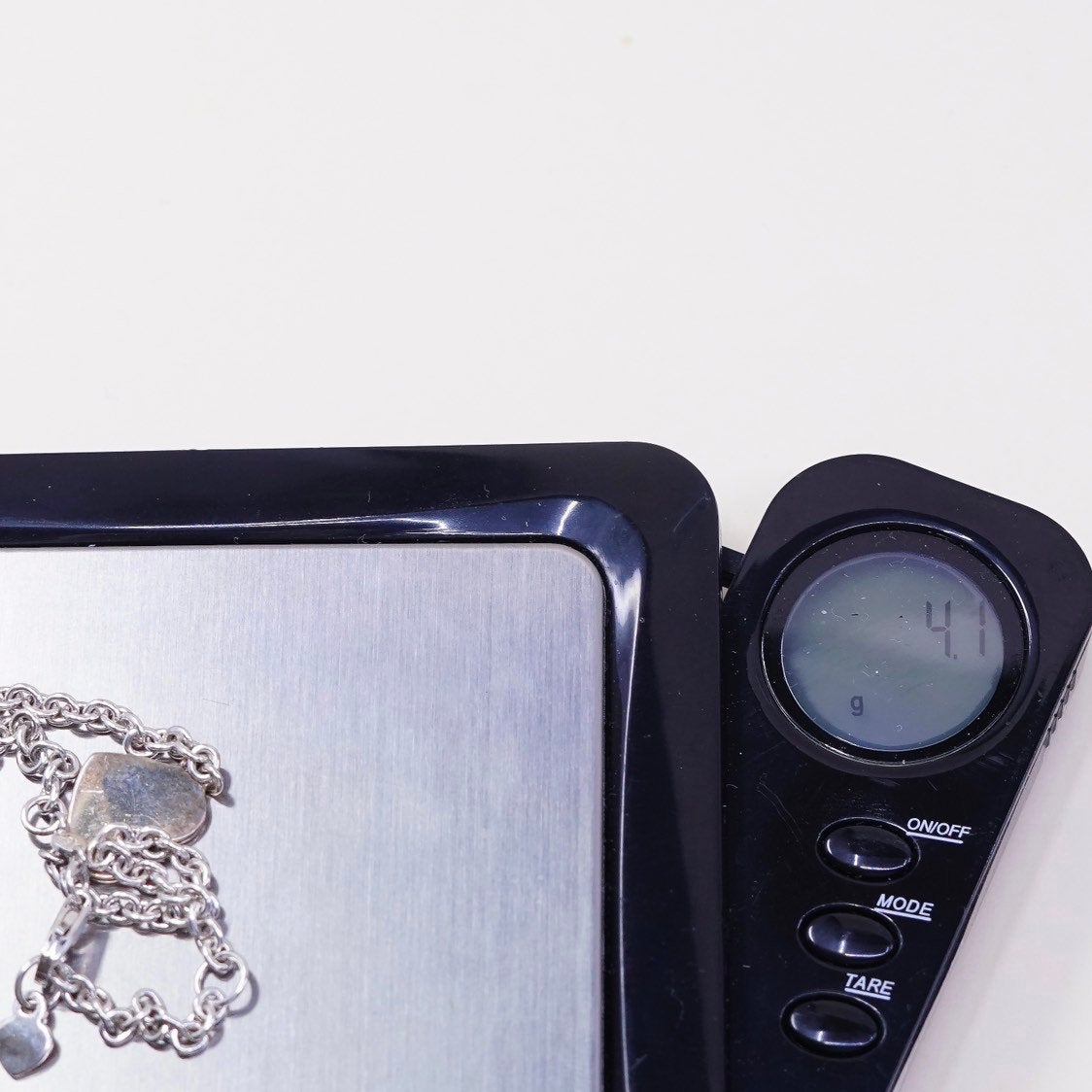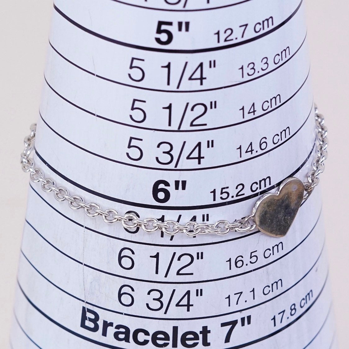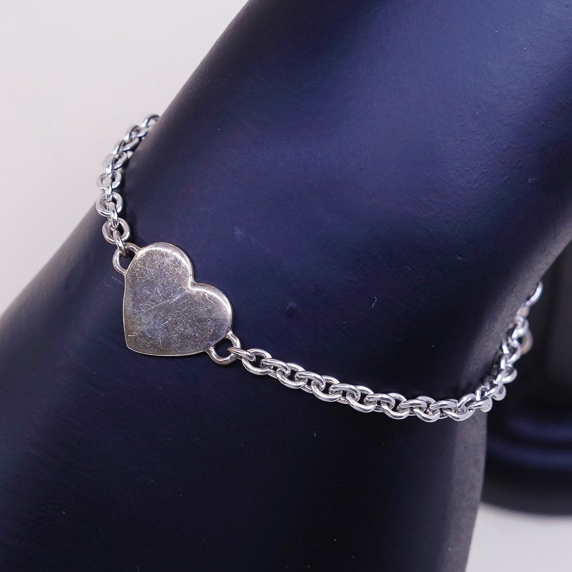 6.25", 2mm, Vintage sterling silver handmade bracelet, Circle chain with heart shaped charm, stamped 925 KH