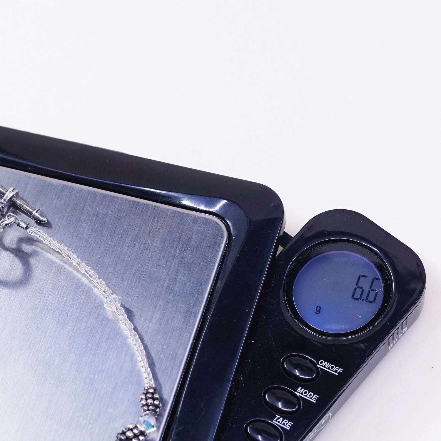 6.25”, Sterling silver handmade bracelet, 925 heart charm with clear crystal