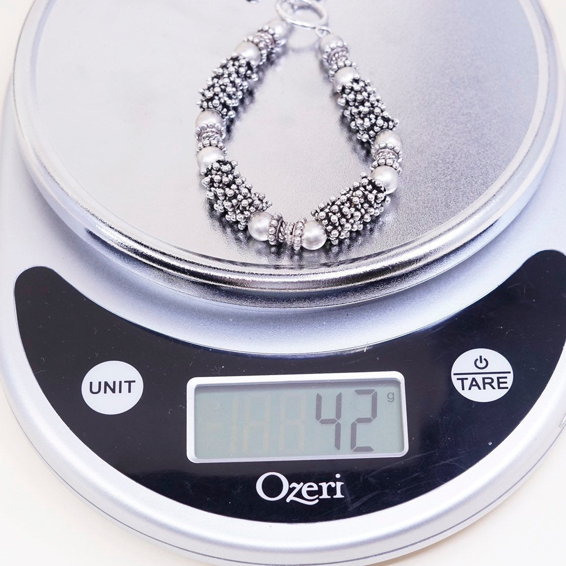 6.25", VTG handmade bracelet, pearl beads with 925 beads and toggle closure