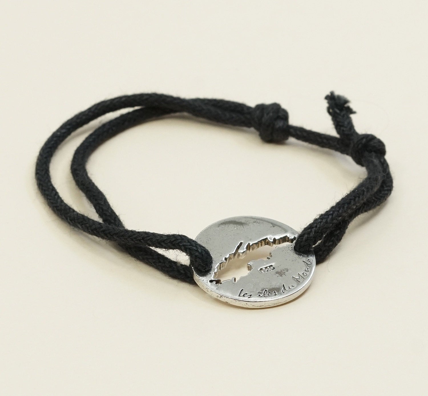 6.25", Vintage thread bracelet, 925 sterling silver tag with "les iles du monde" cut out, stamped 925