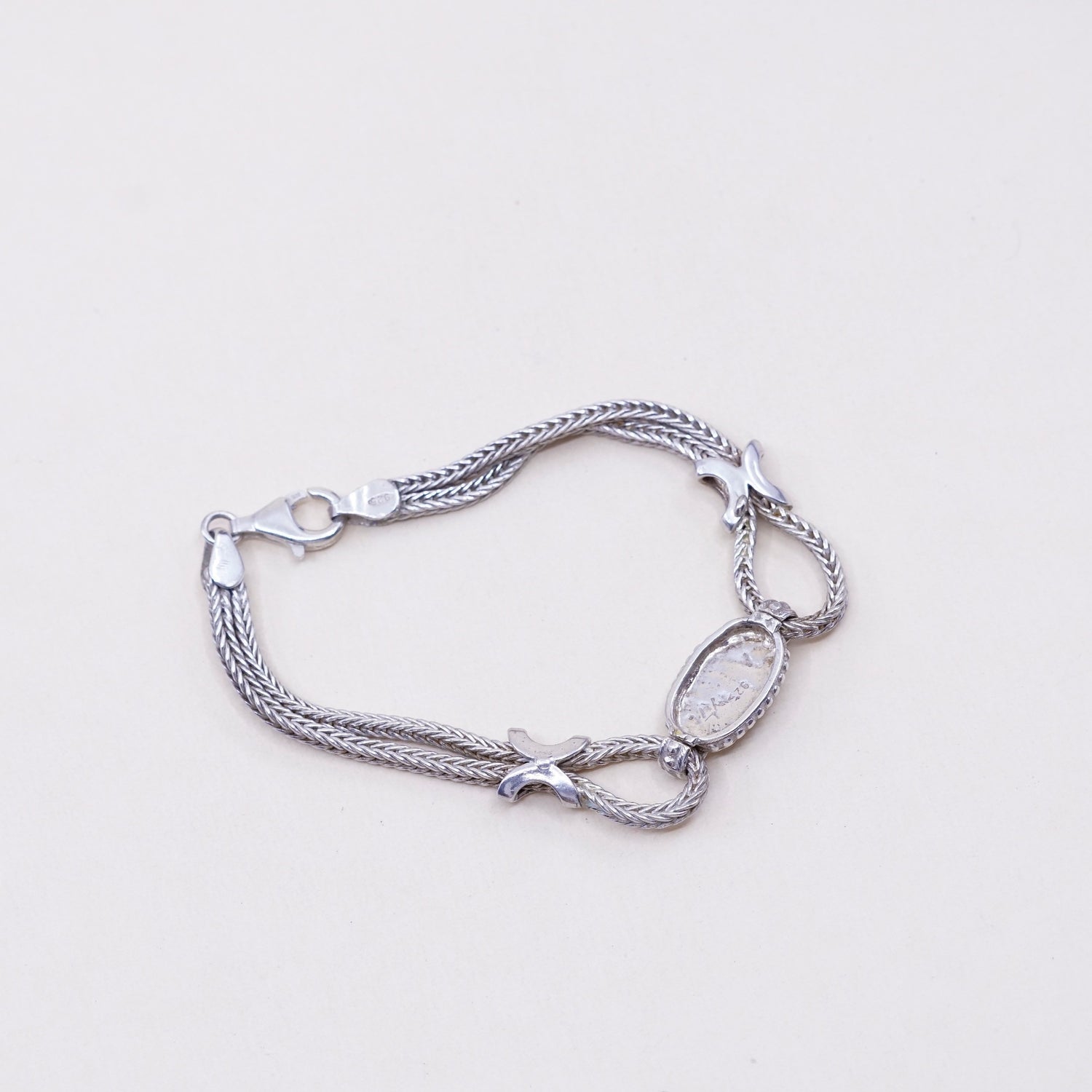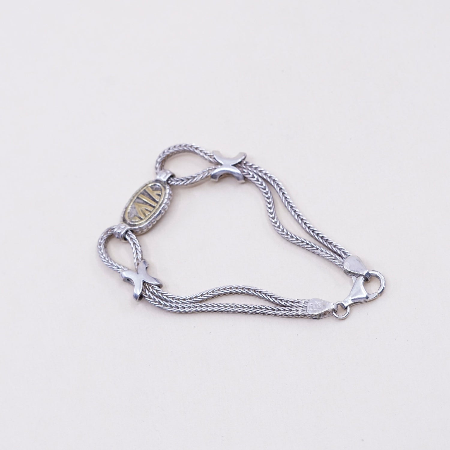 6.5", vintage 14K gold accent with sterling silver handmade bracelet, double strands 925 wheat chain with initial "YIW", stamped 925