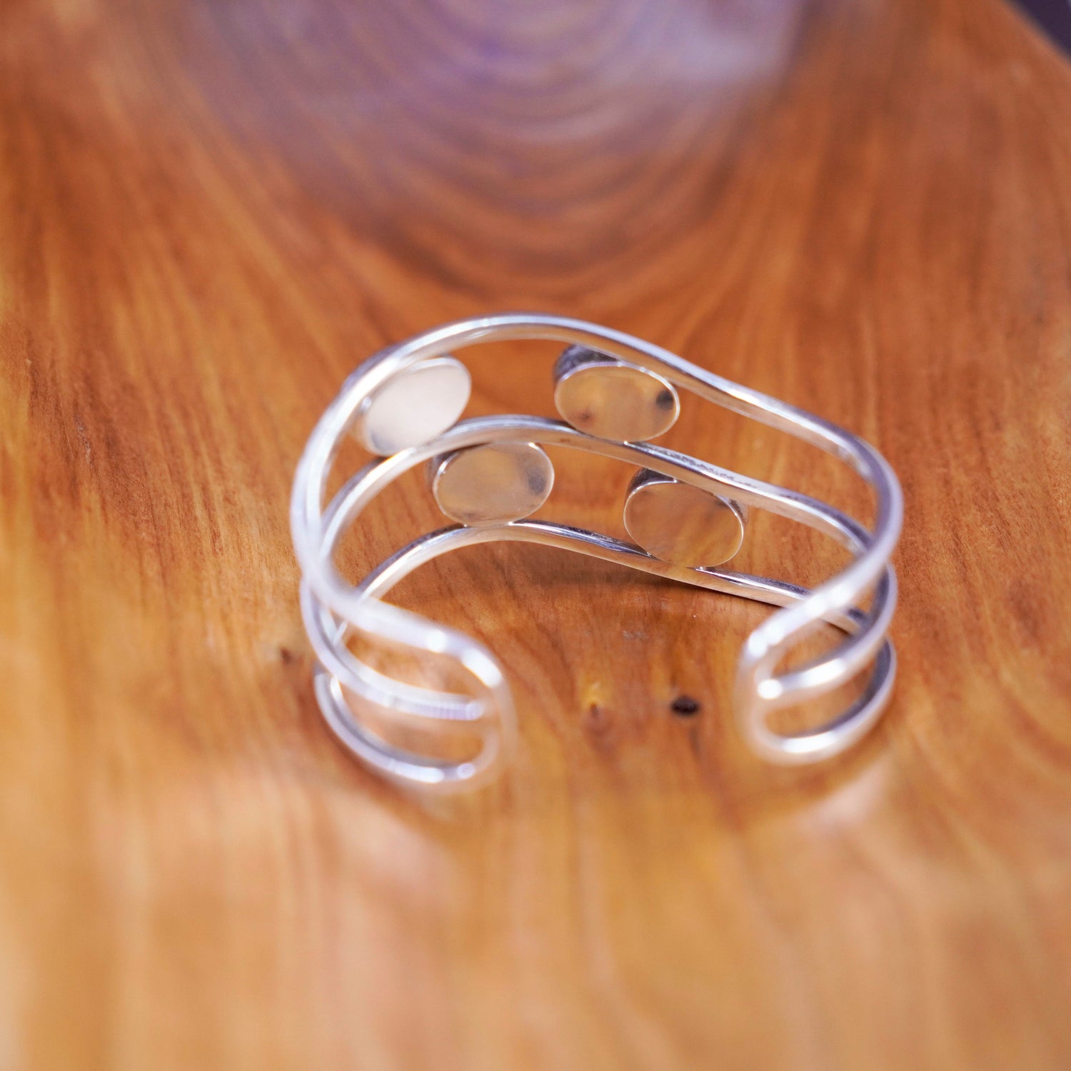 6.5”, antique sterling silver handmade bracelet, wide 925 cable cuff with onyx