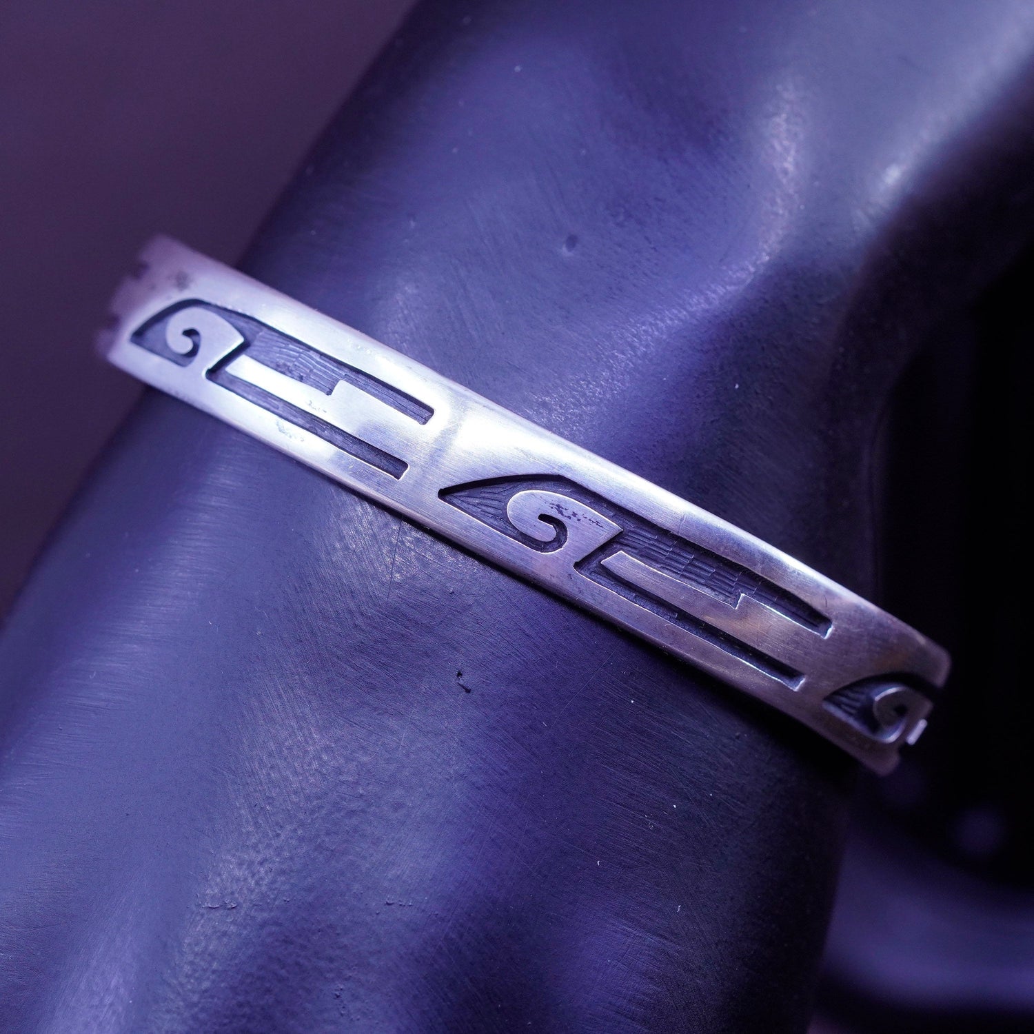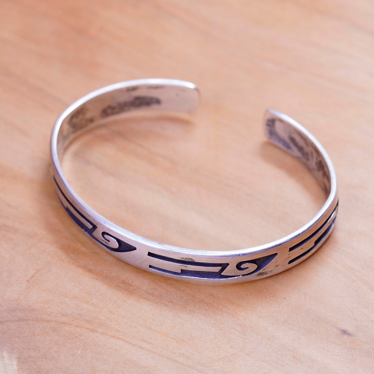 6.5”, Native American Hopi Hubert Yowytewa Sterling 925 silver overlay bracelet