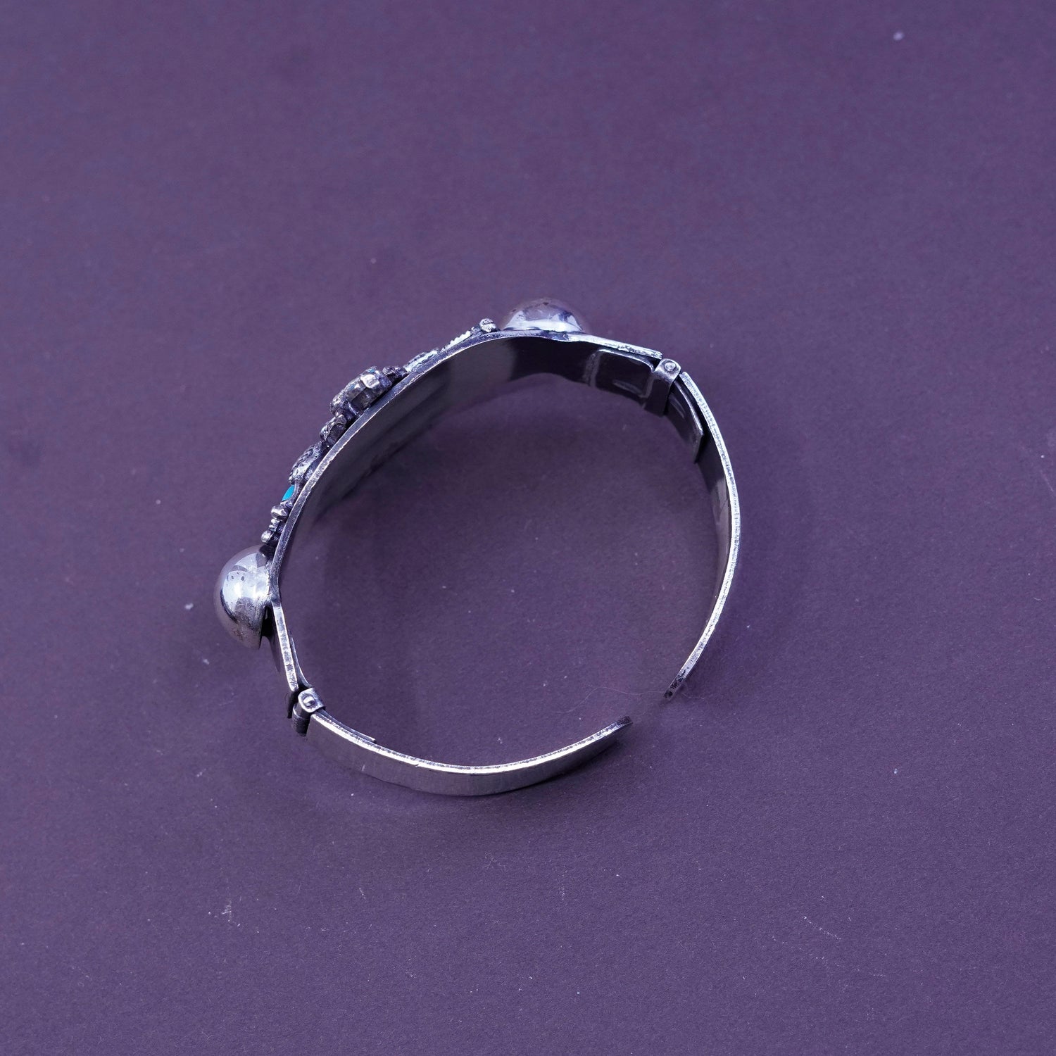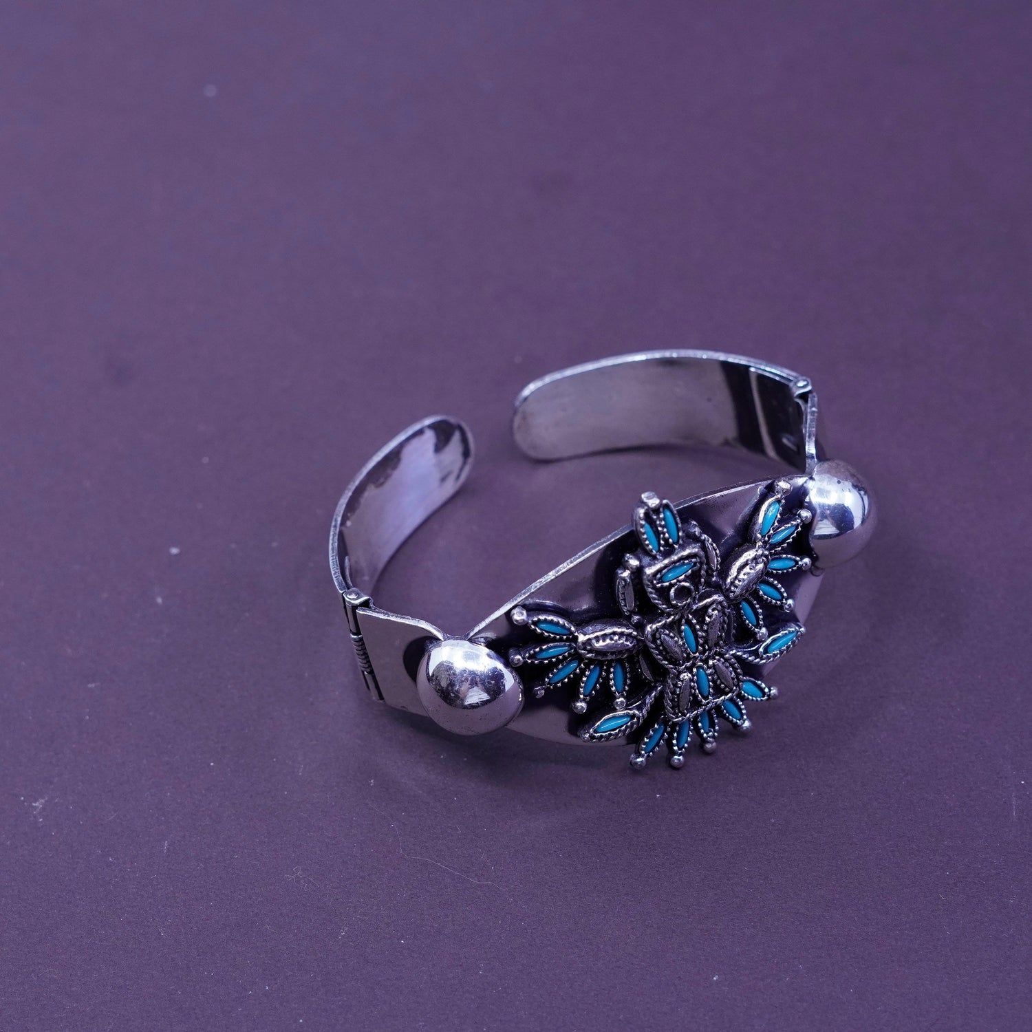 6.5", Vintage Navajo Sterling silver handmade bracelet, Native American, Hopi 925 thunderbird cuff with turquoise, silver tested