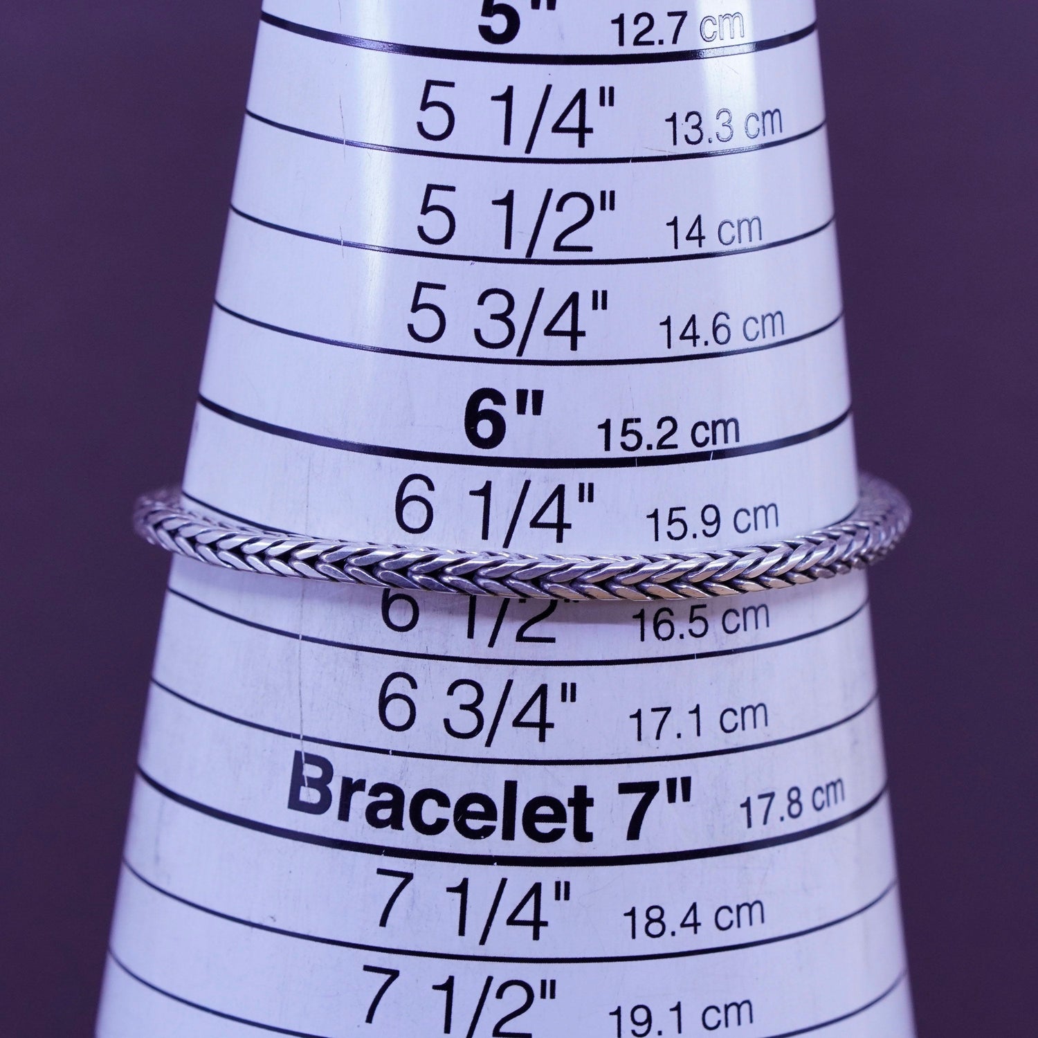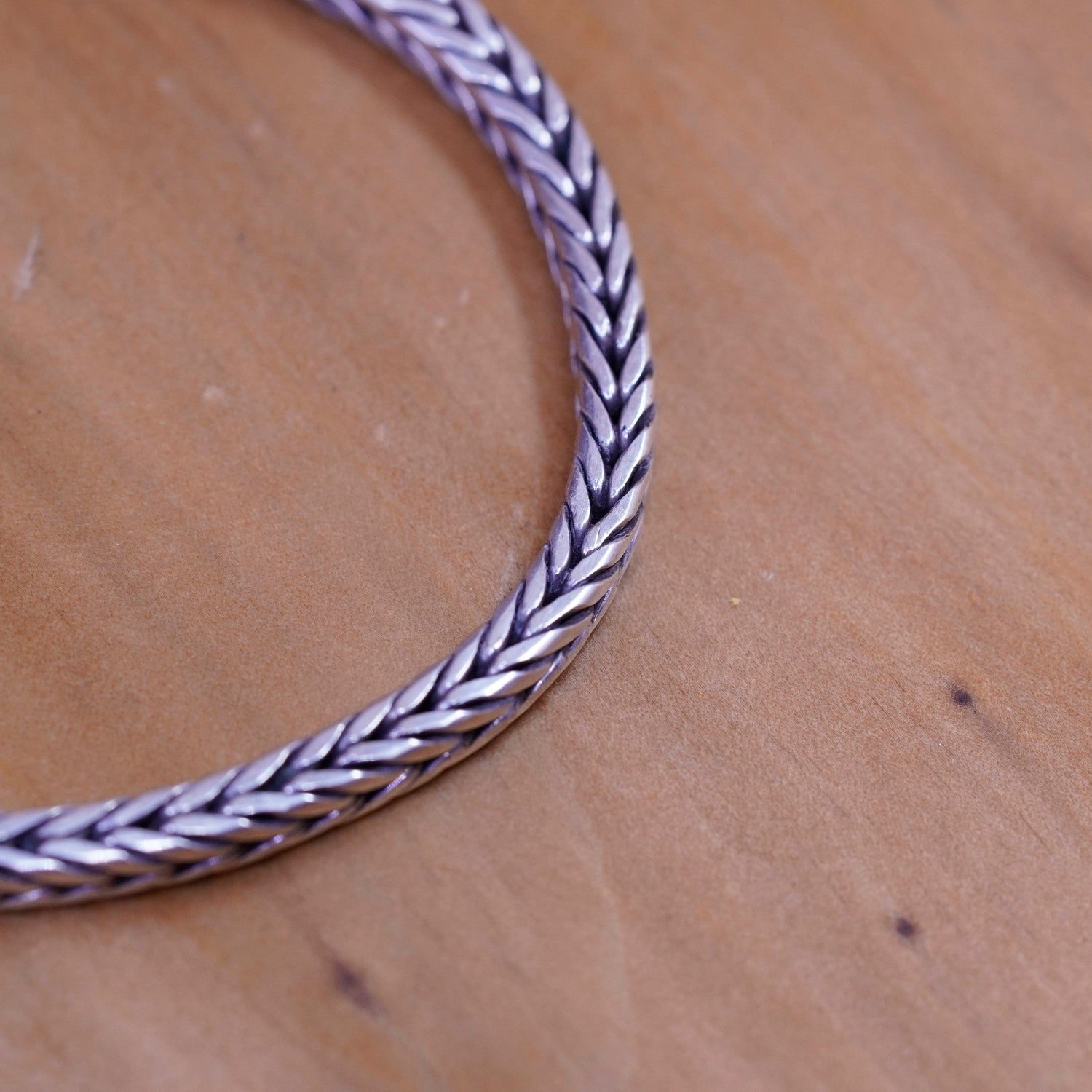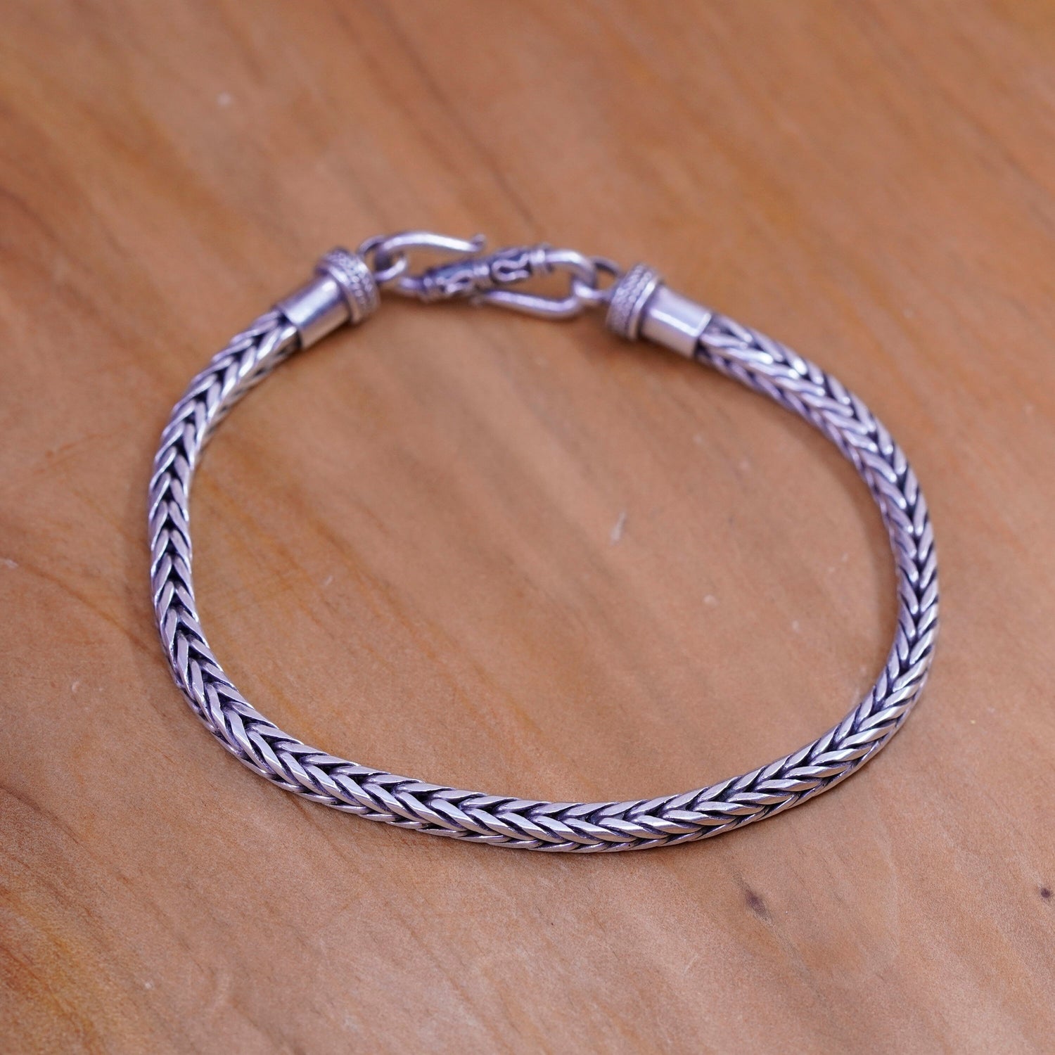 6.5”, vintage heavy Sterling silver handmade bracelet, square 925 wheat chain