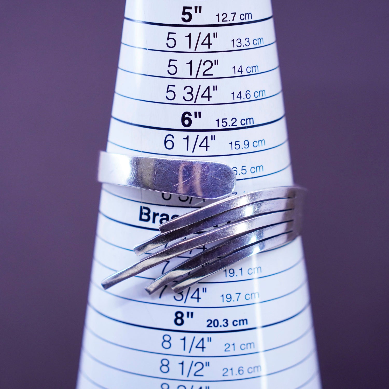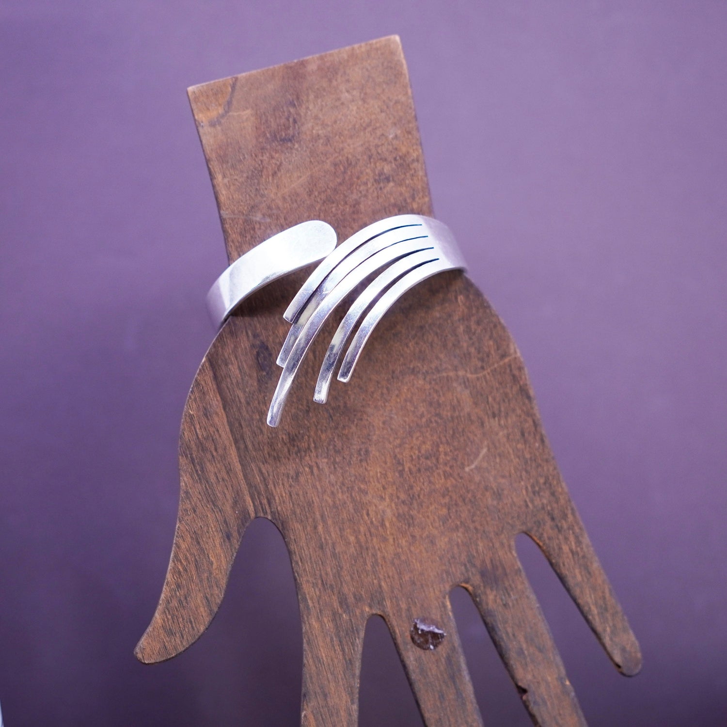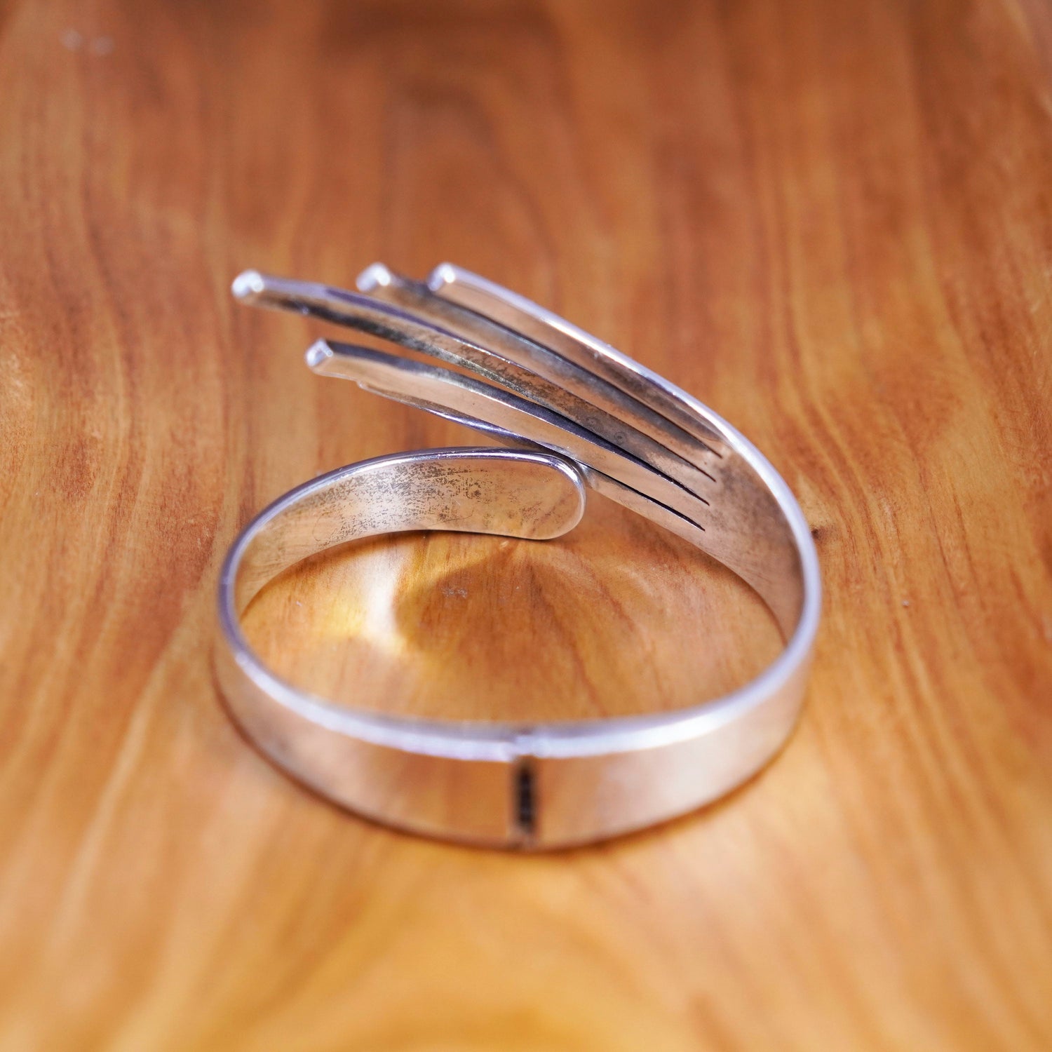 6.5", Vintage Hecho En Sterling 925 silver handmade bracelet, fork bangle, stamped Mexico Hecho En