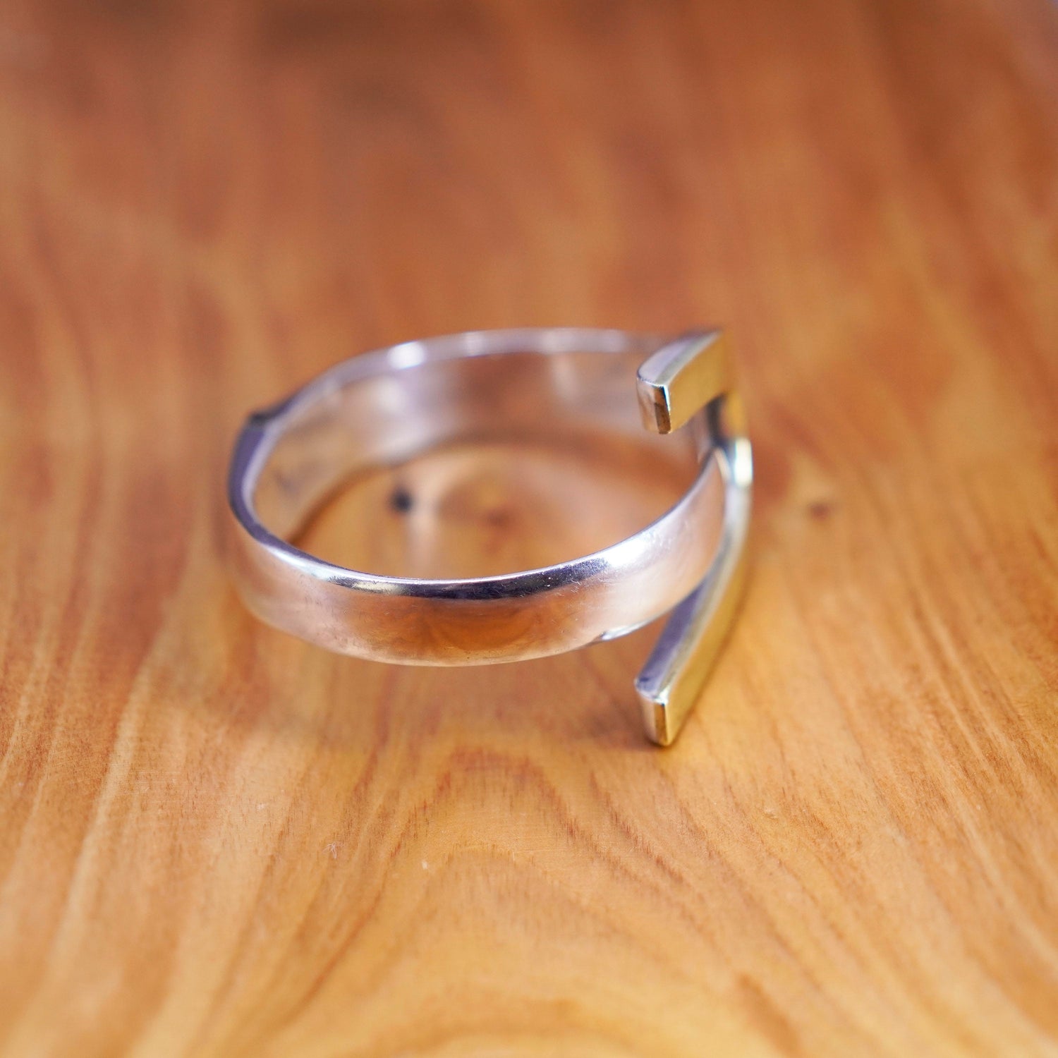 6.5”, Vintage two tone Sterling silver handmade bracelet, 925 wrap bangle