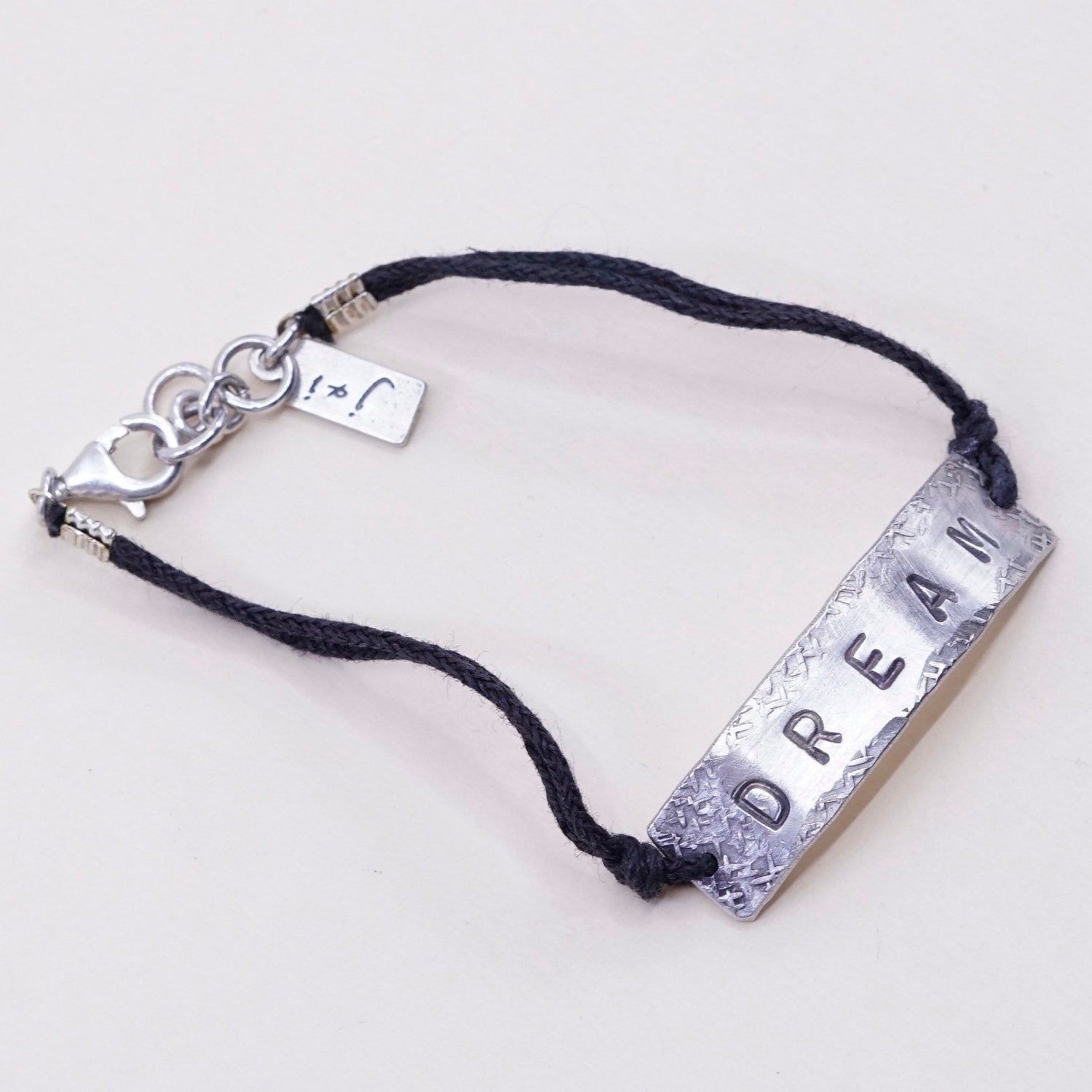 6.5", vintage Ian Gibson J&I Sterling 925 silver bracelet, with bar engraved "dream", stamped 925 J&I
