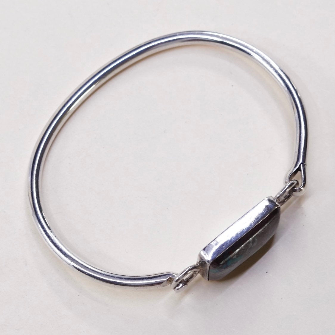 6.5", Vintage sterling silver bangle bracelet with turquoise inlay, Stamped mexico 925
