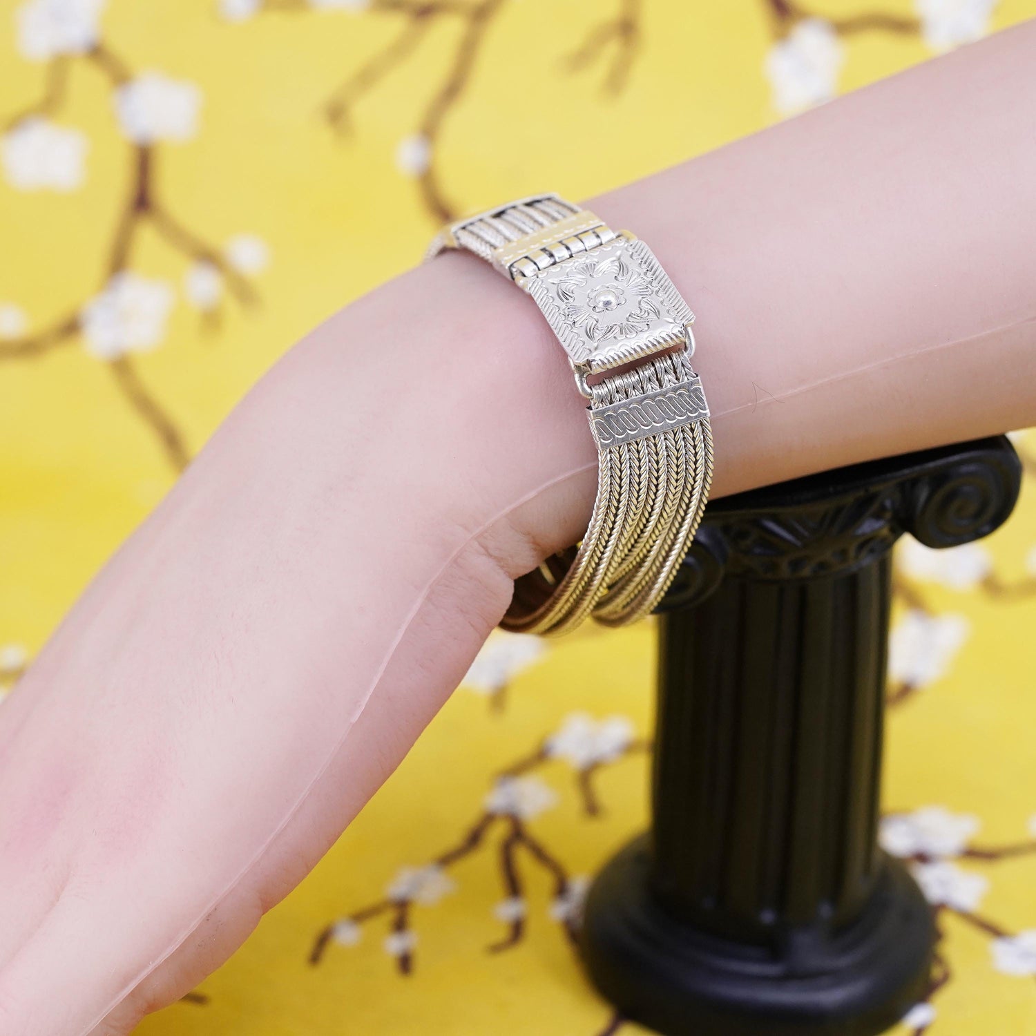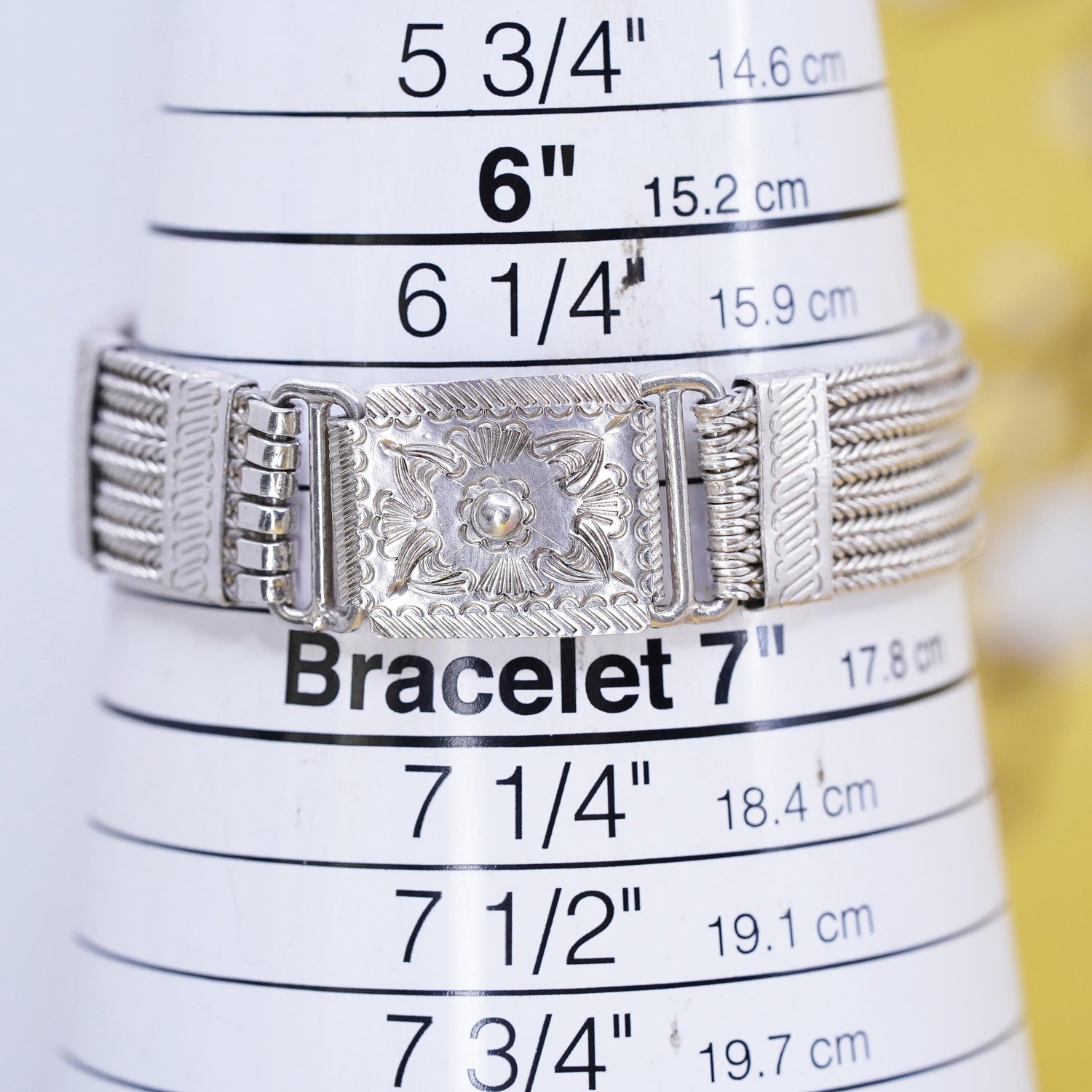 6.5”, VTG Nepal Sterling 925 silver handmade bracelet, 6 strands wheat chain