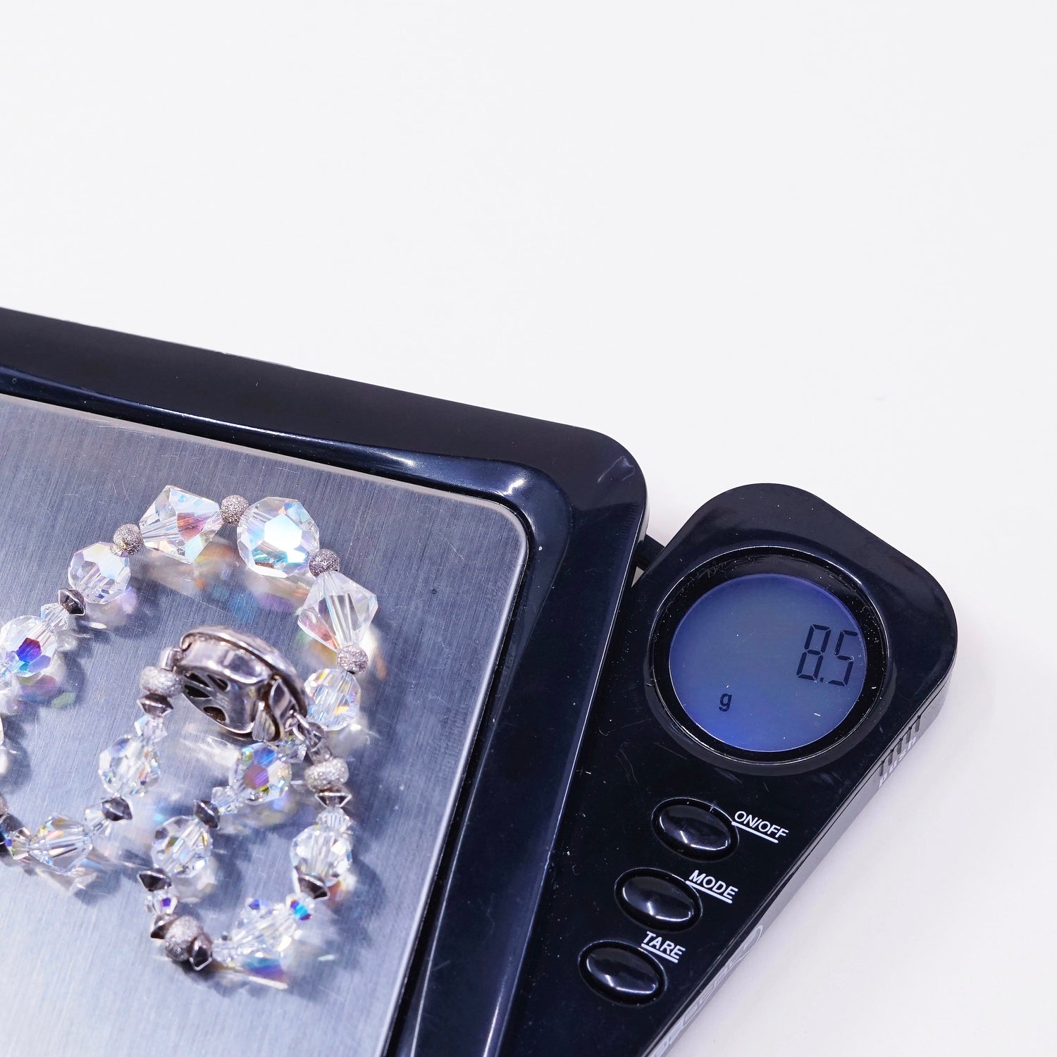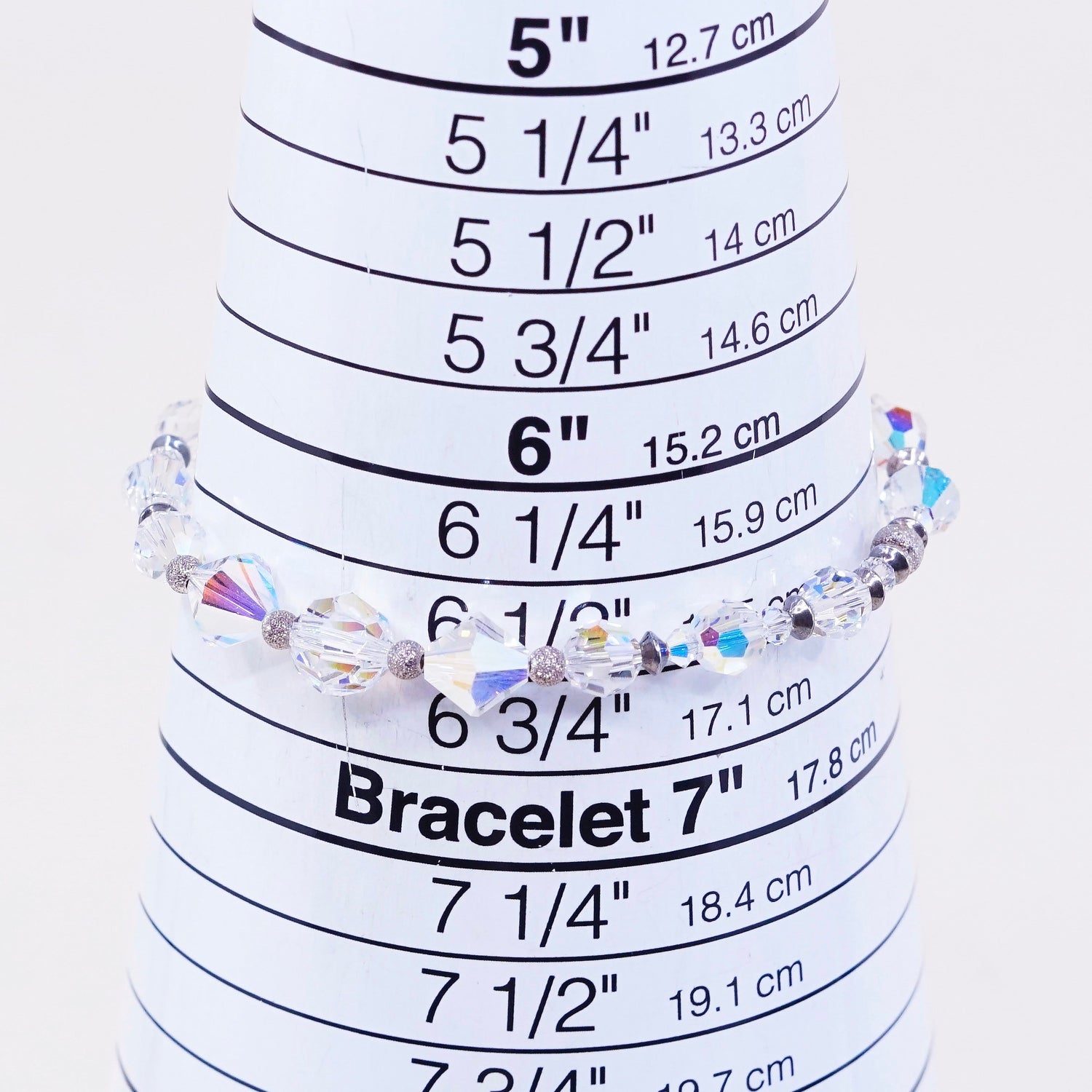6.5”, vtg sterling silver handmade bracelet, 925 clasp with crystal beads