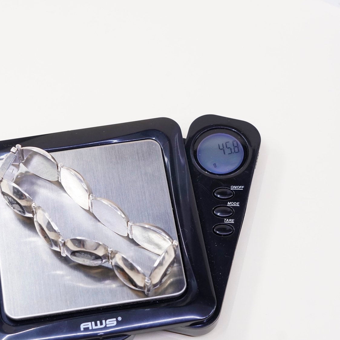 6.5”, VTG Sterling silver handmade bracelet, 925 with mother of pearl clover