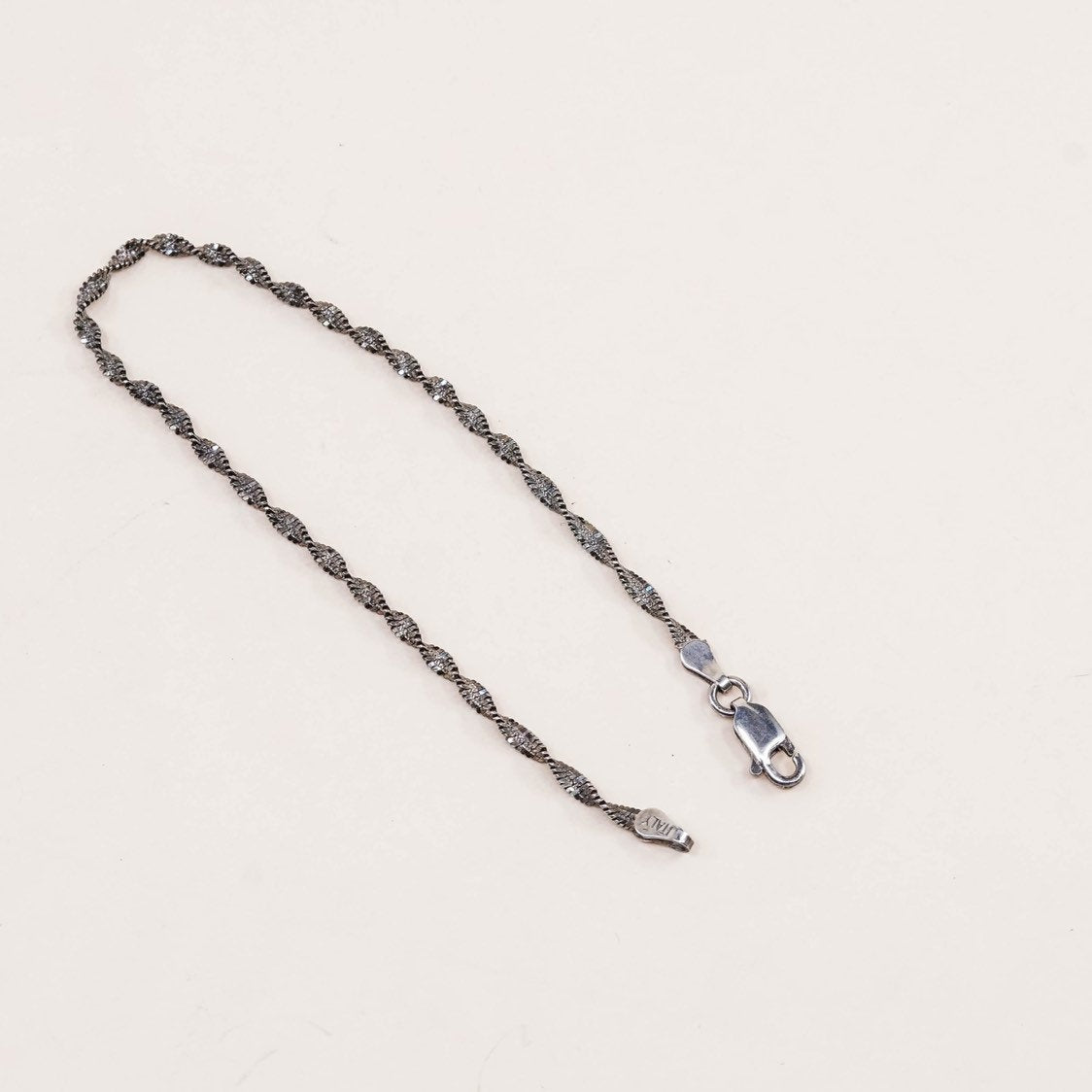 6.75", 3mm, Vintage gold over sterling silver bracelet, solid 925 silver twisted herringbone chain, stamped Italy 925