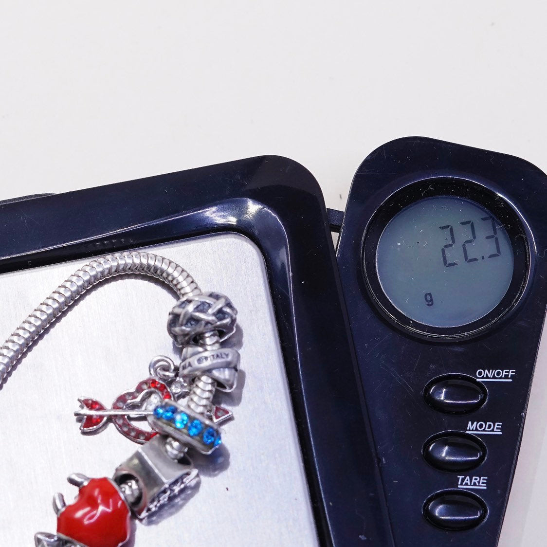 6.75" 3mm, VTG Sterling silver bracelet, 925 bold snake chain, w/ 7 charms