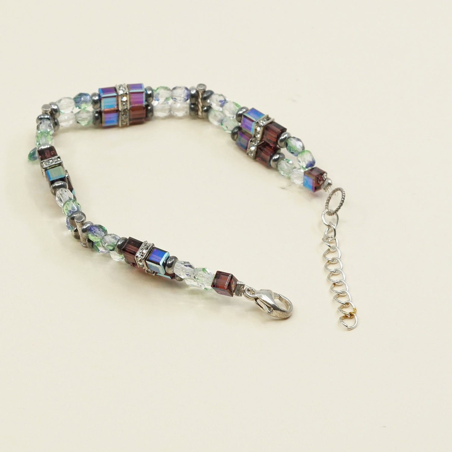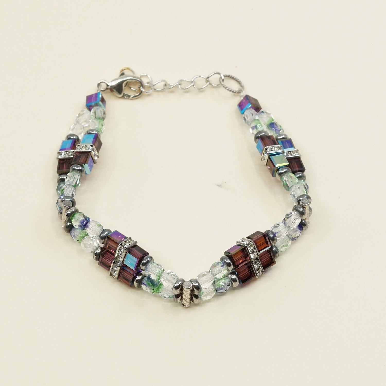 6.75", 925 Sterling silver clasp, handmade bracelet artisan glass