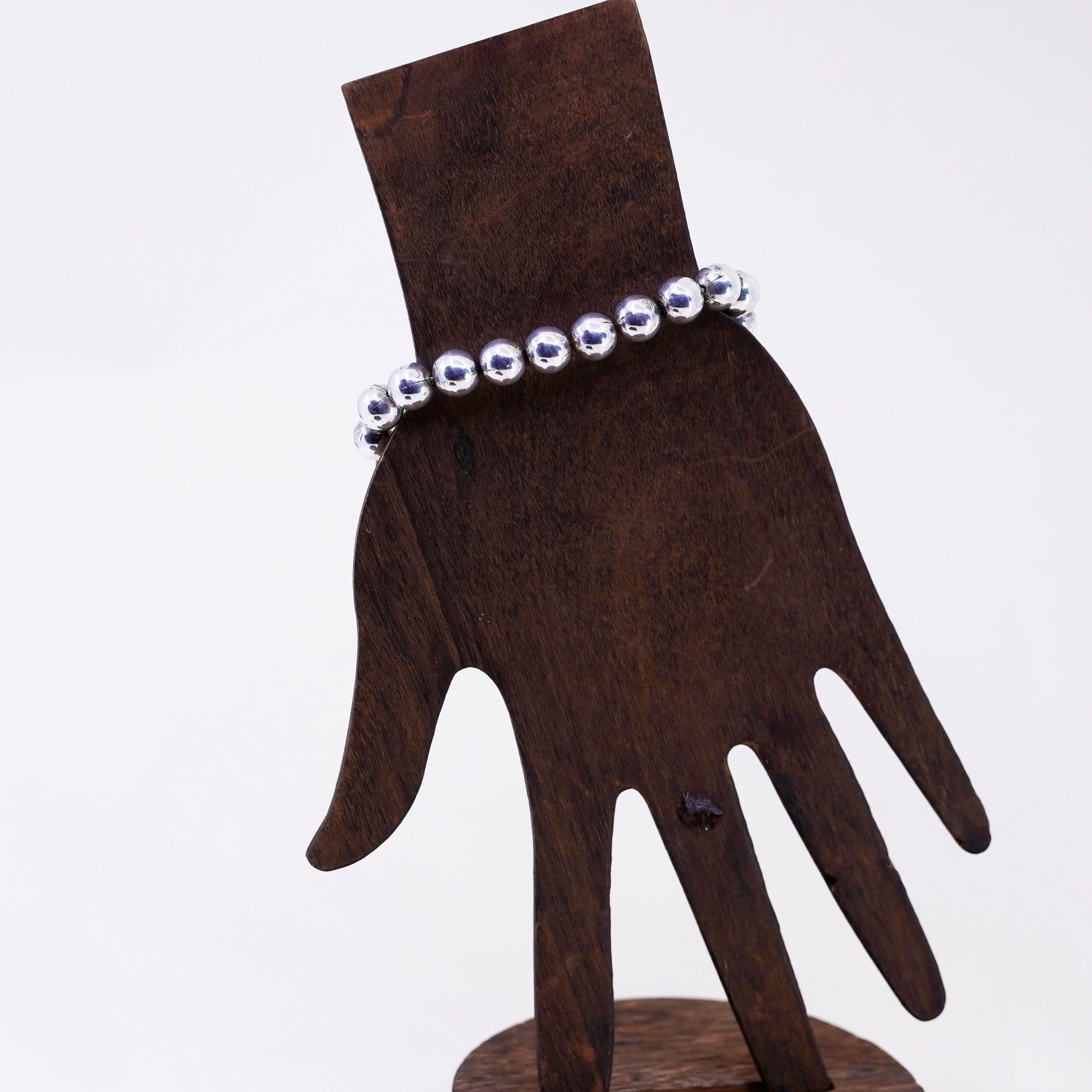 6.75" 9mm, vintage sterling silver handmade bracelet, 925 bead chain, stamped 925