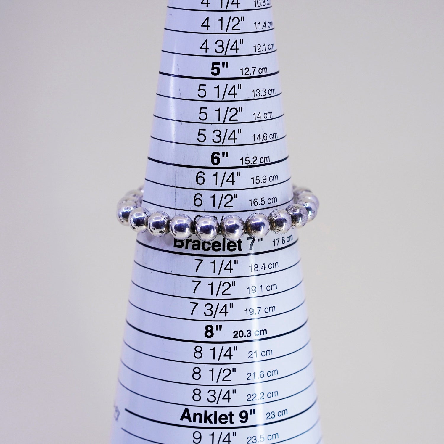 6.75” 9mm, vintage sterling silver handmade bracelet, 925 bead chain