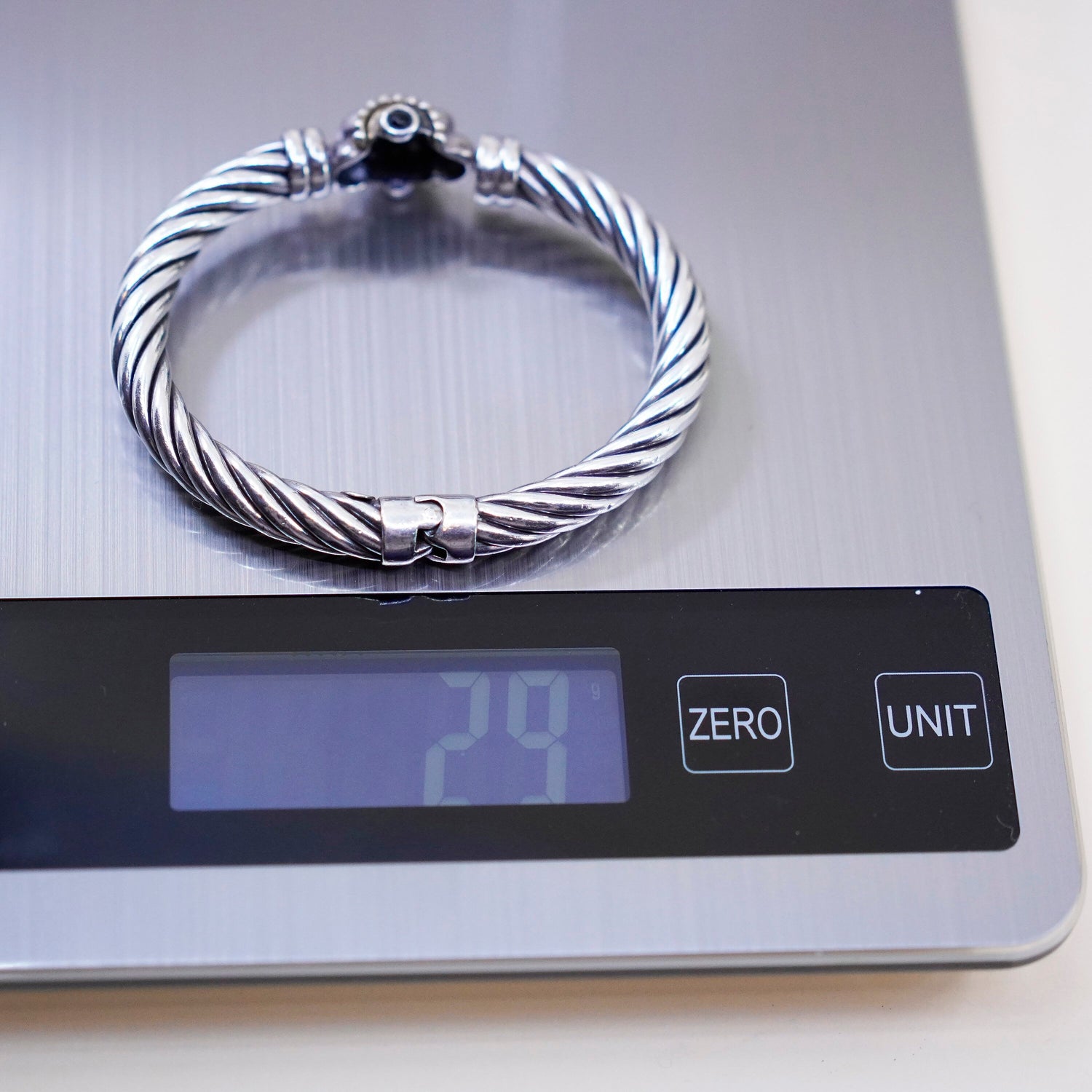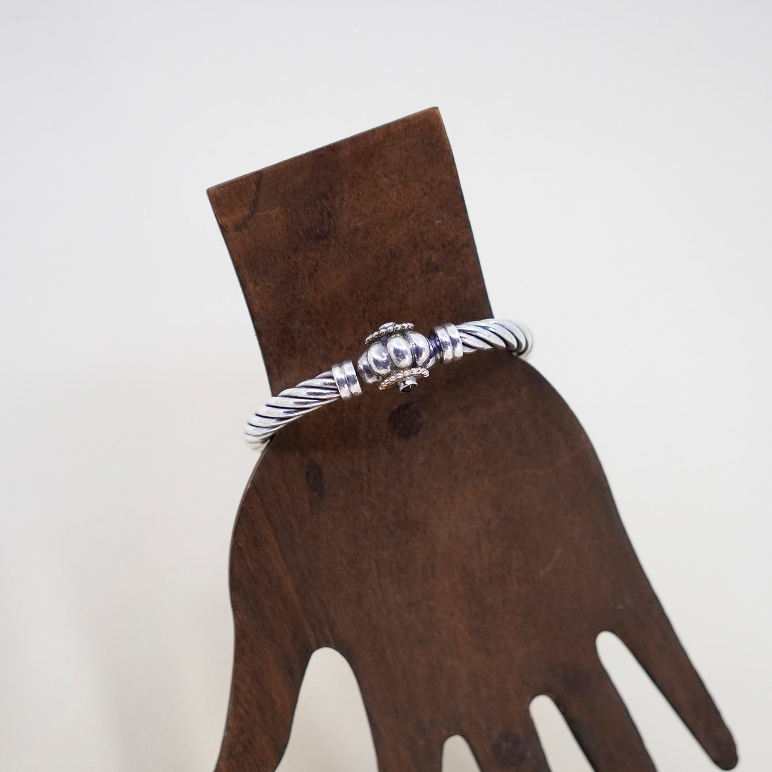 6.75", vintage Italy FLLI MENEGATTI 925 sterling silver Cable hinged Cuff bracelet with 14K beads details, stamped Italy M