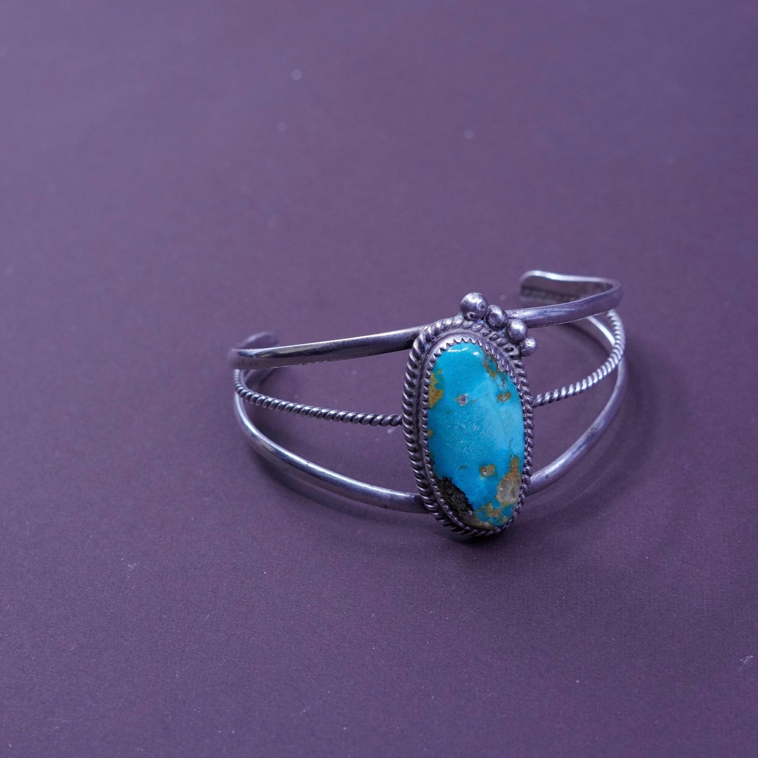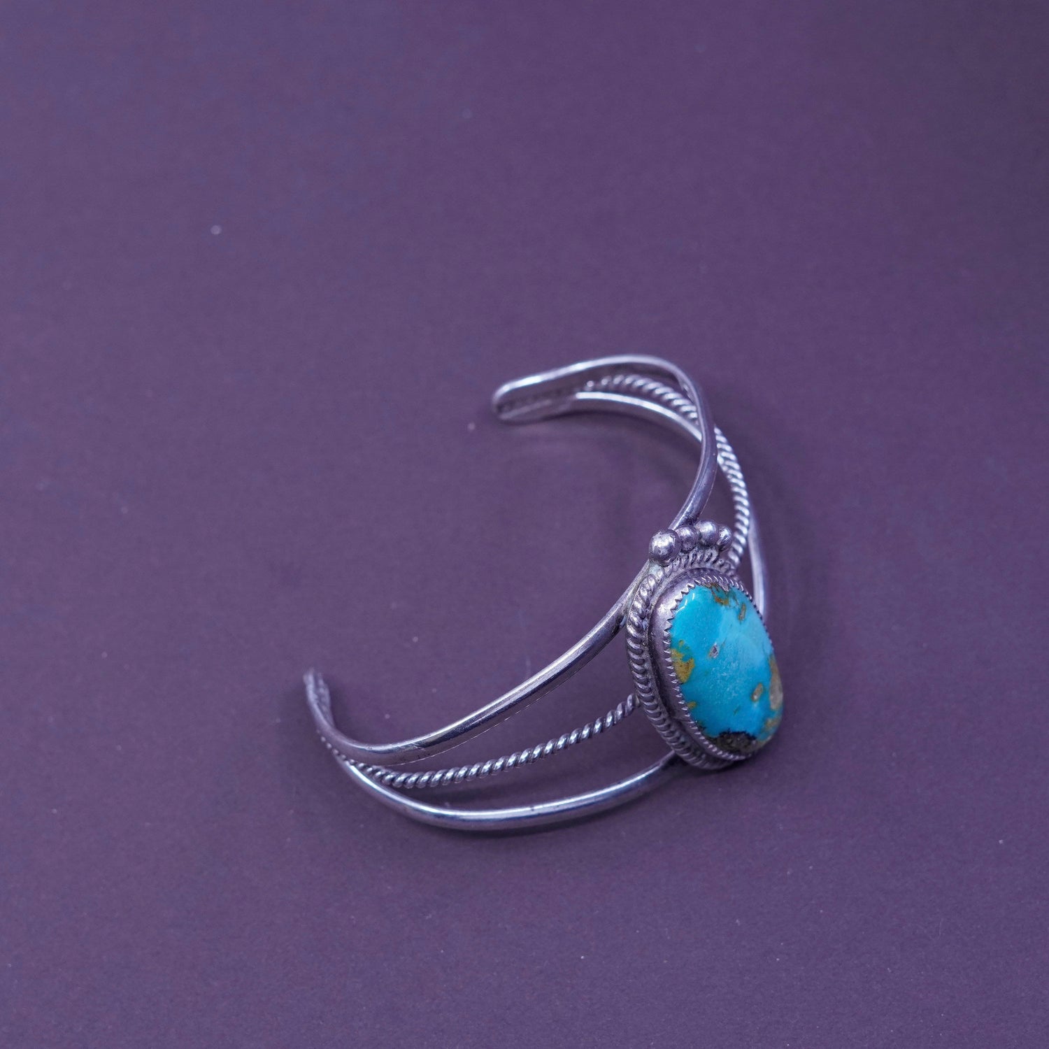 6.75", vintage Samson Kee Navajo Sterling silver handmade bracelet, Native American, southwestern 925 cuff with turquoise, stamped sterling SK