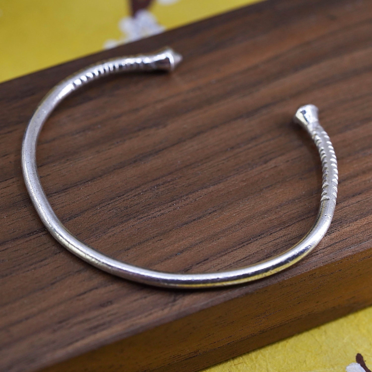 6.75", antique Southwestern sterling silver handmade bracelet, stackable textured 925 cuff, silver tested
