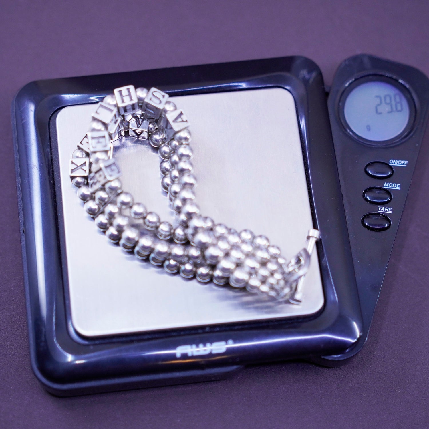 6.75", Vintage Sterling 925 silver handmade bracelet amethyst beads with "Ashlee Skyler Alex" cubes, silver tested