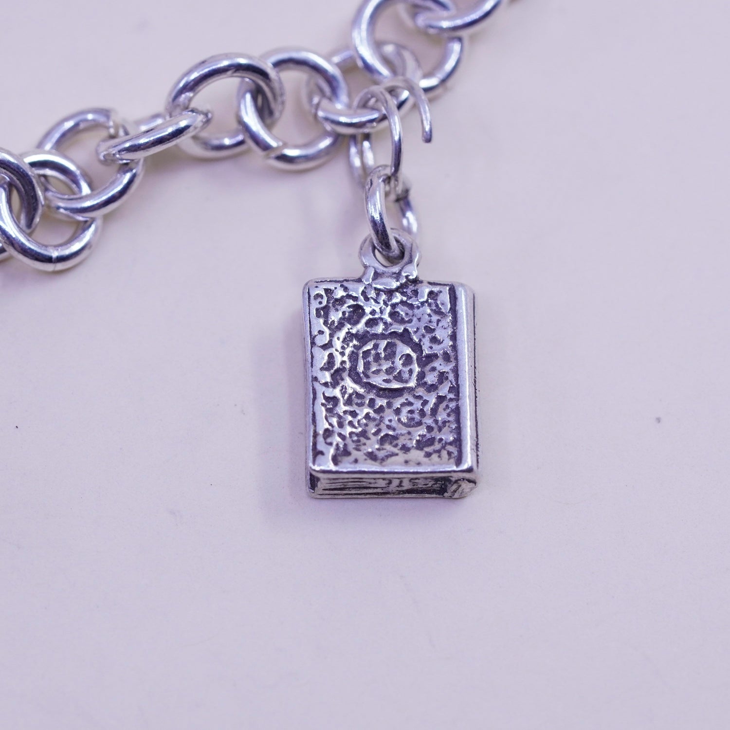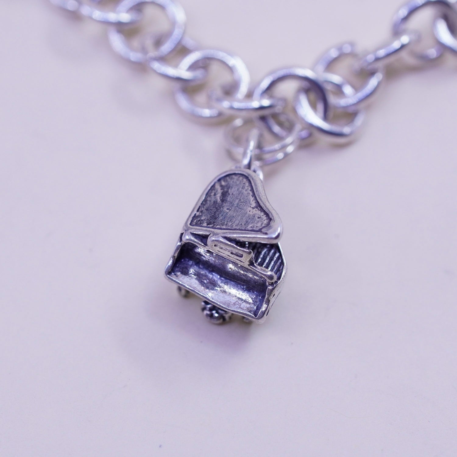 6.75” sterling silver bracelet, bold circle chain heart bible cross piano