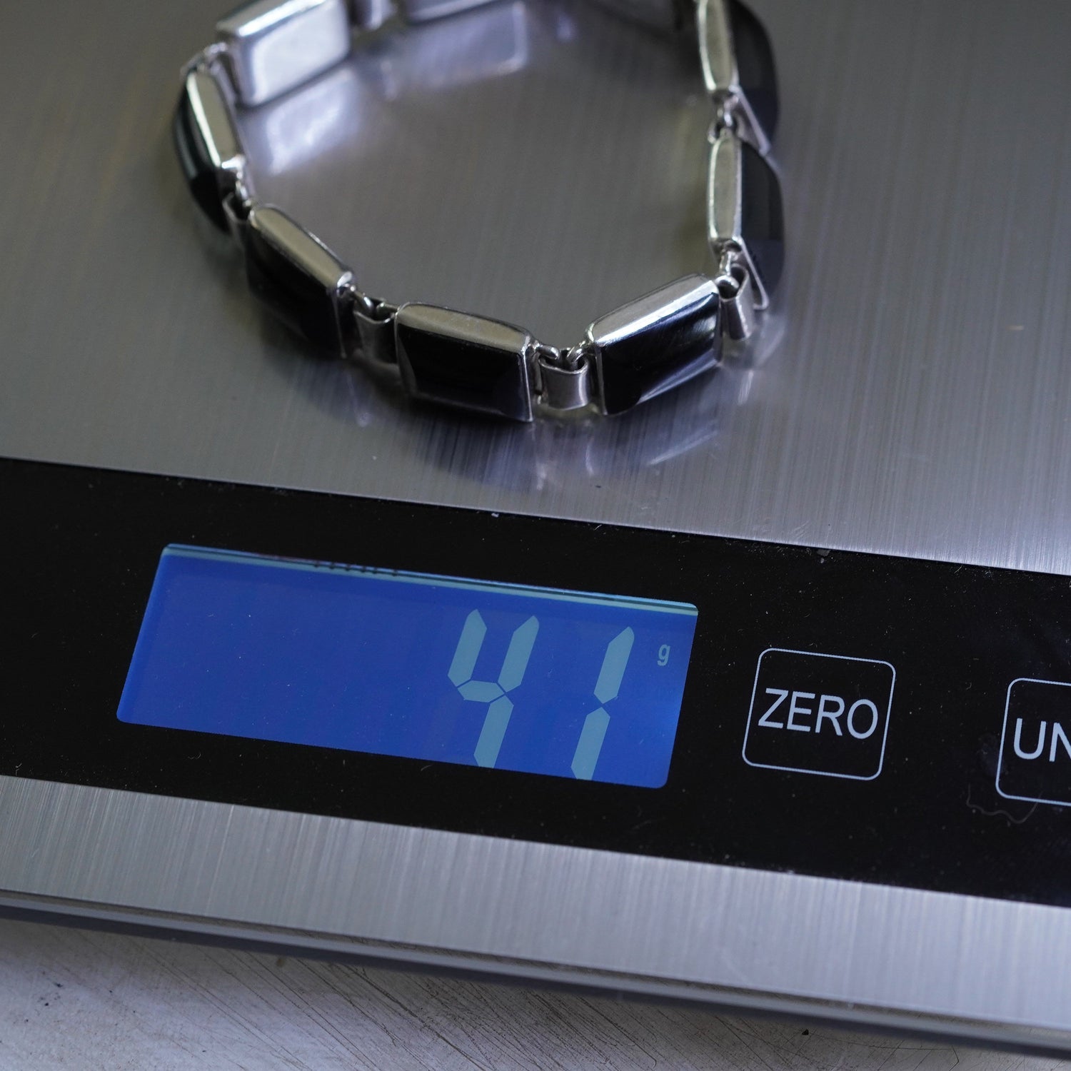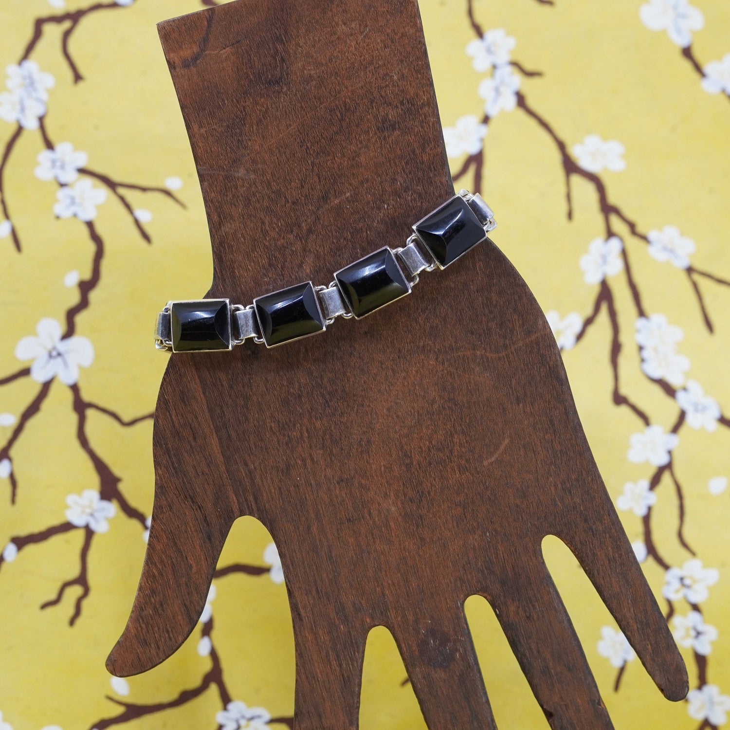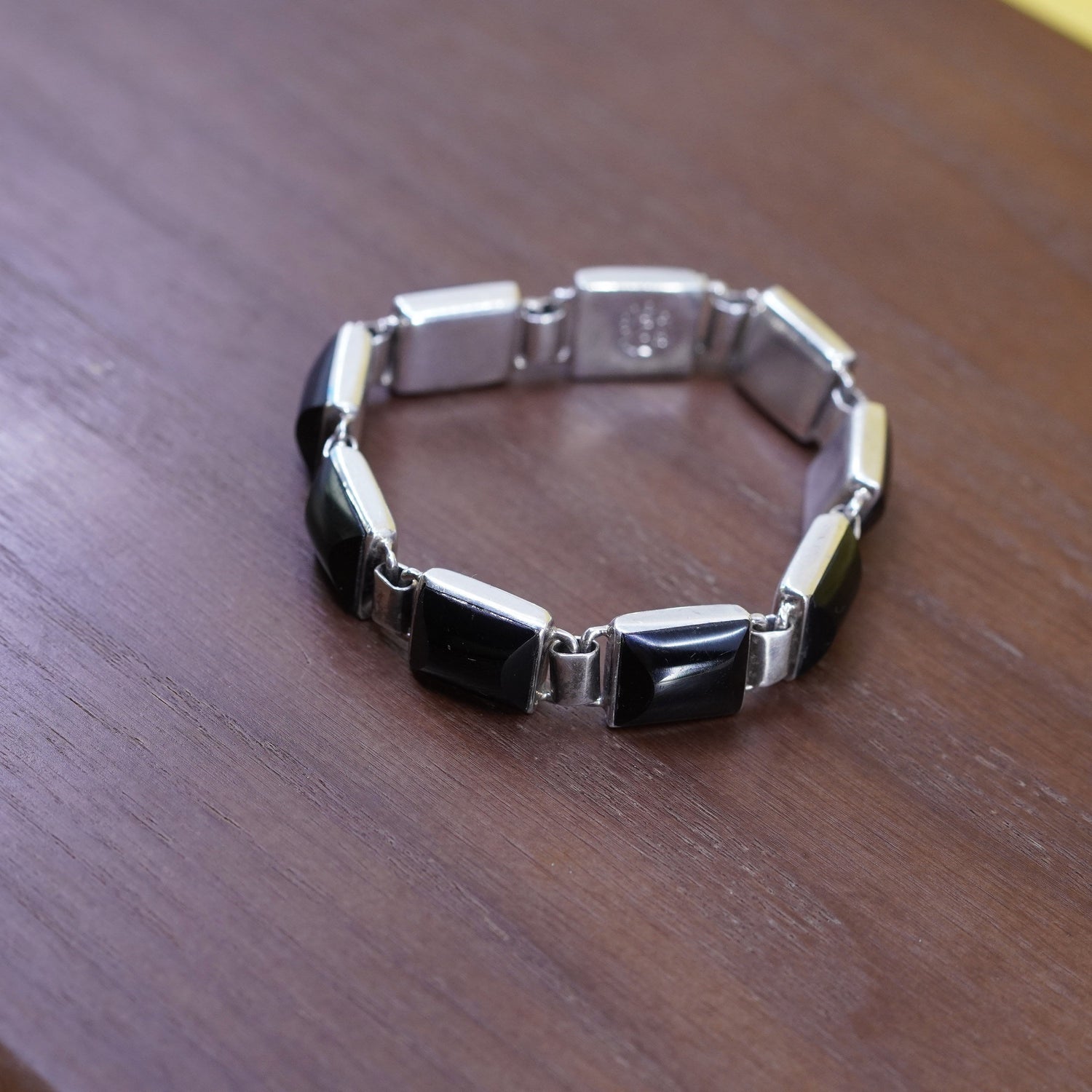 6.75”, Sterling silver handmade bracelet, Mexico 925 chain with square onyx