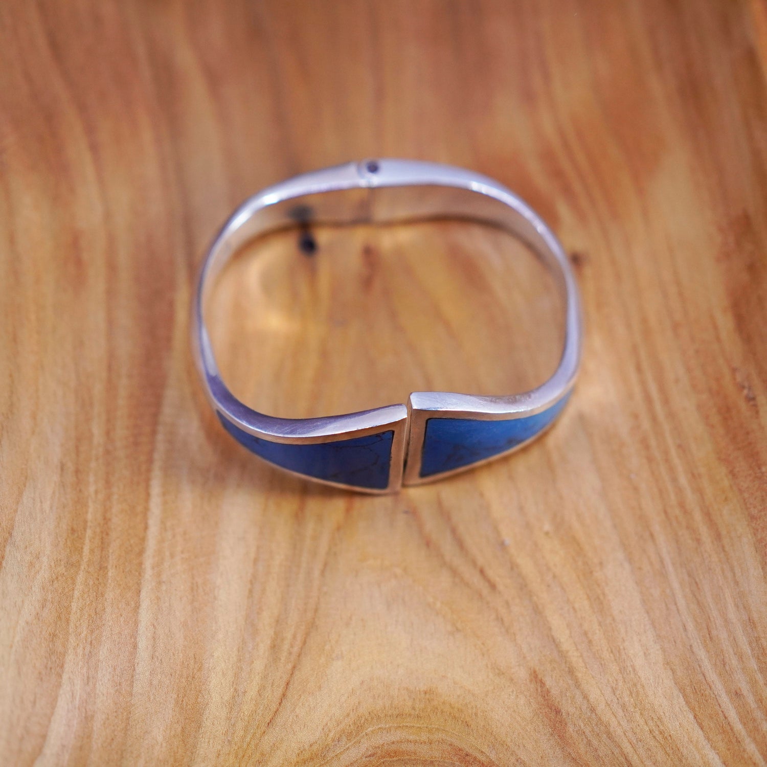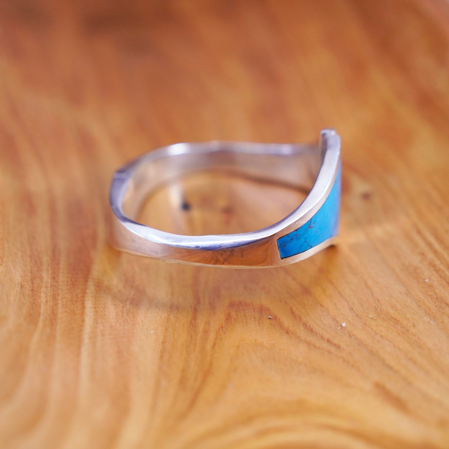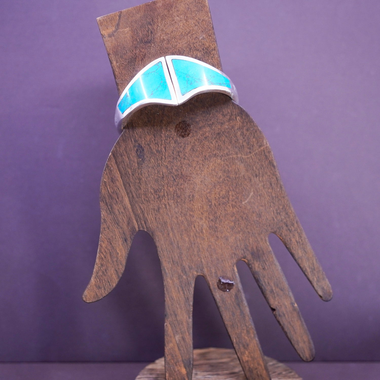 6.75”, Vintage Mexico Sterling silver handmade bracelet 925 bangle w/ turquoise