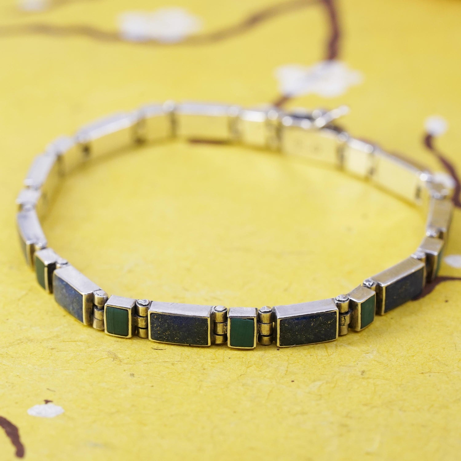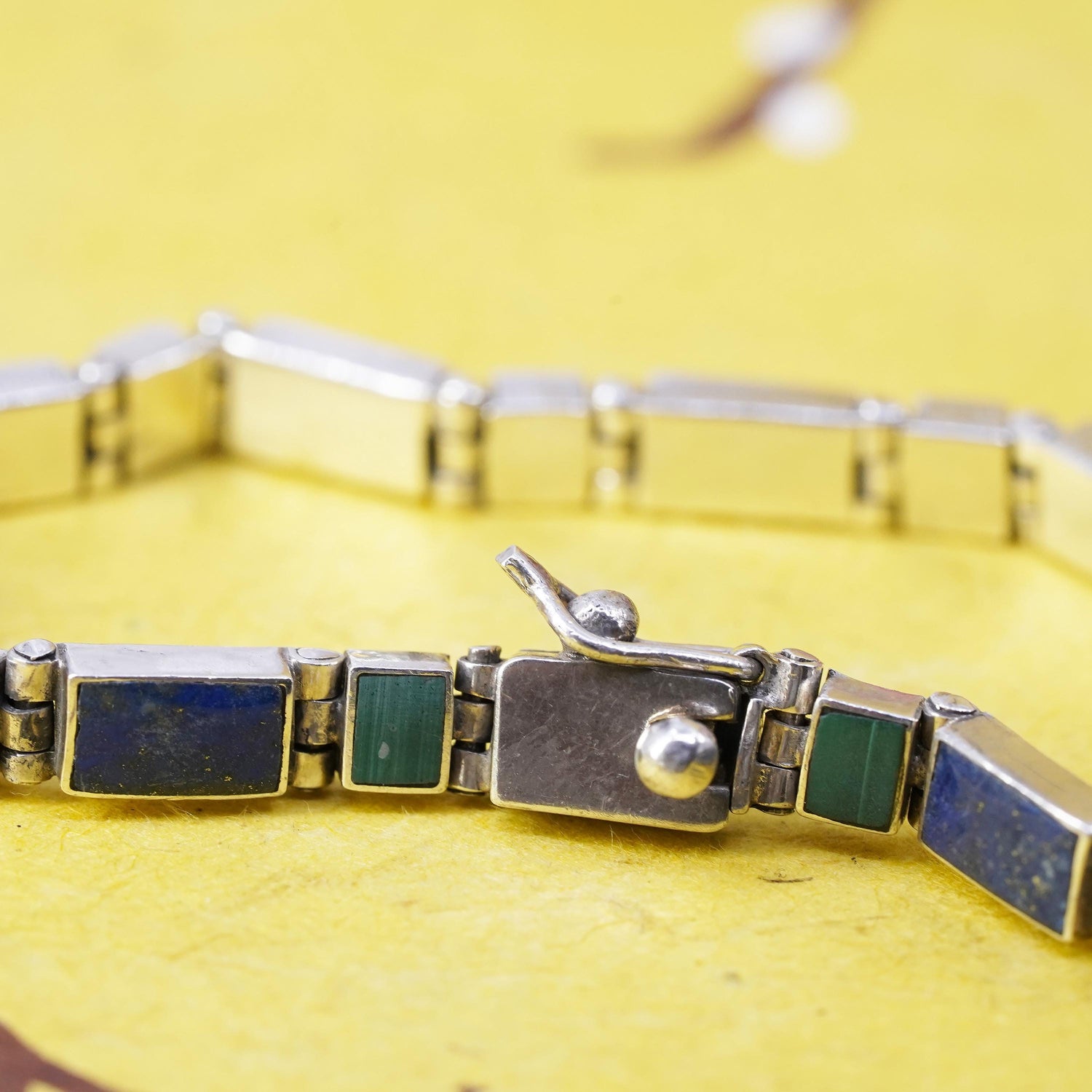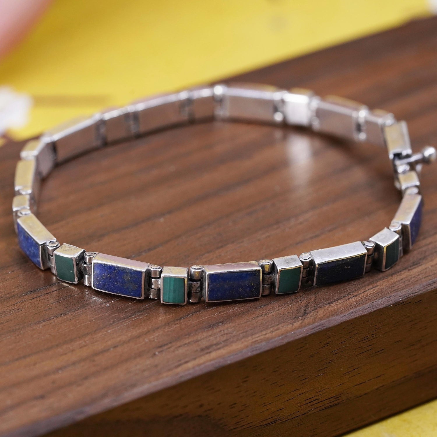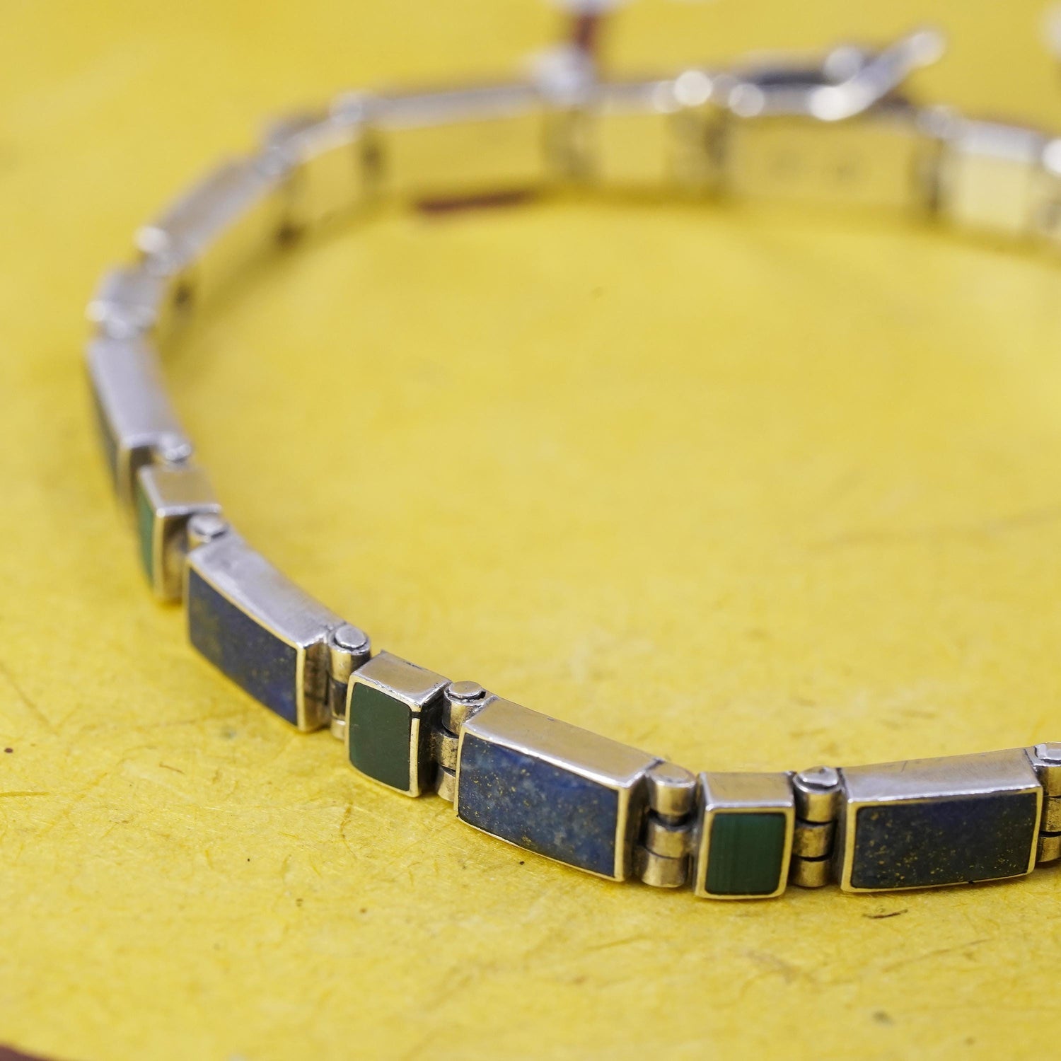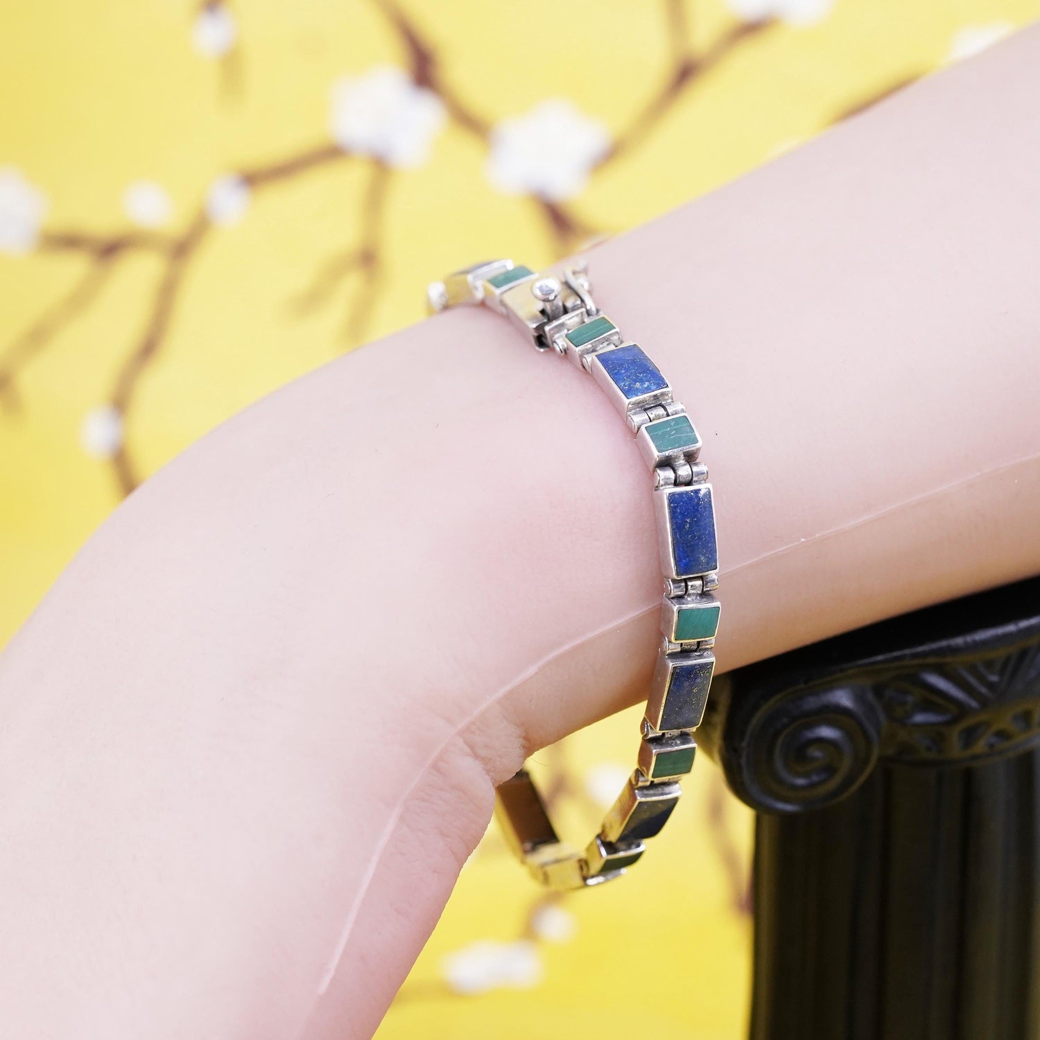 6.75", vintage southwestern Sterling 950 silver tennis bracelet with turquoise inlay, stamped 950