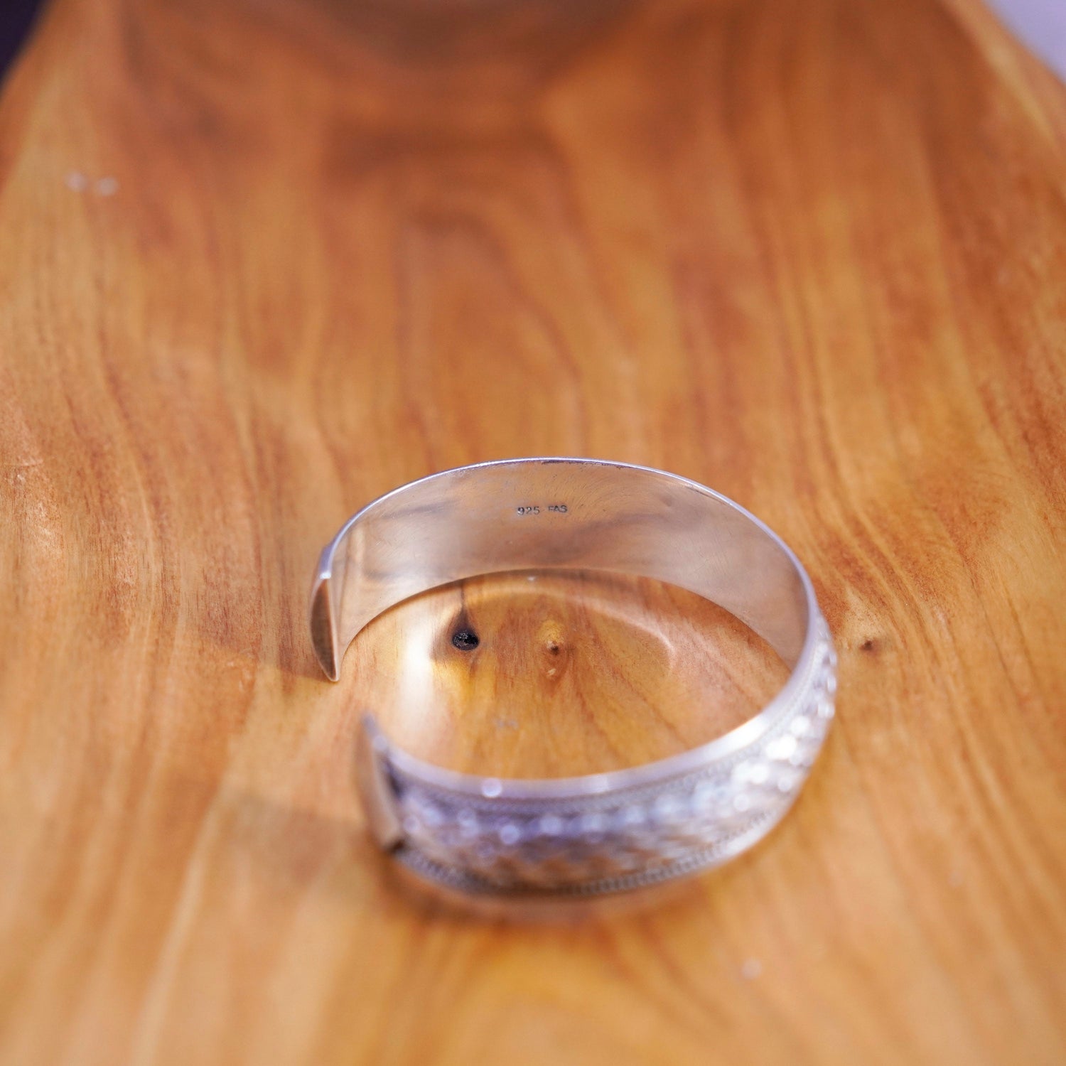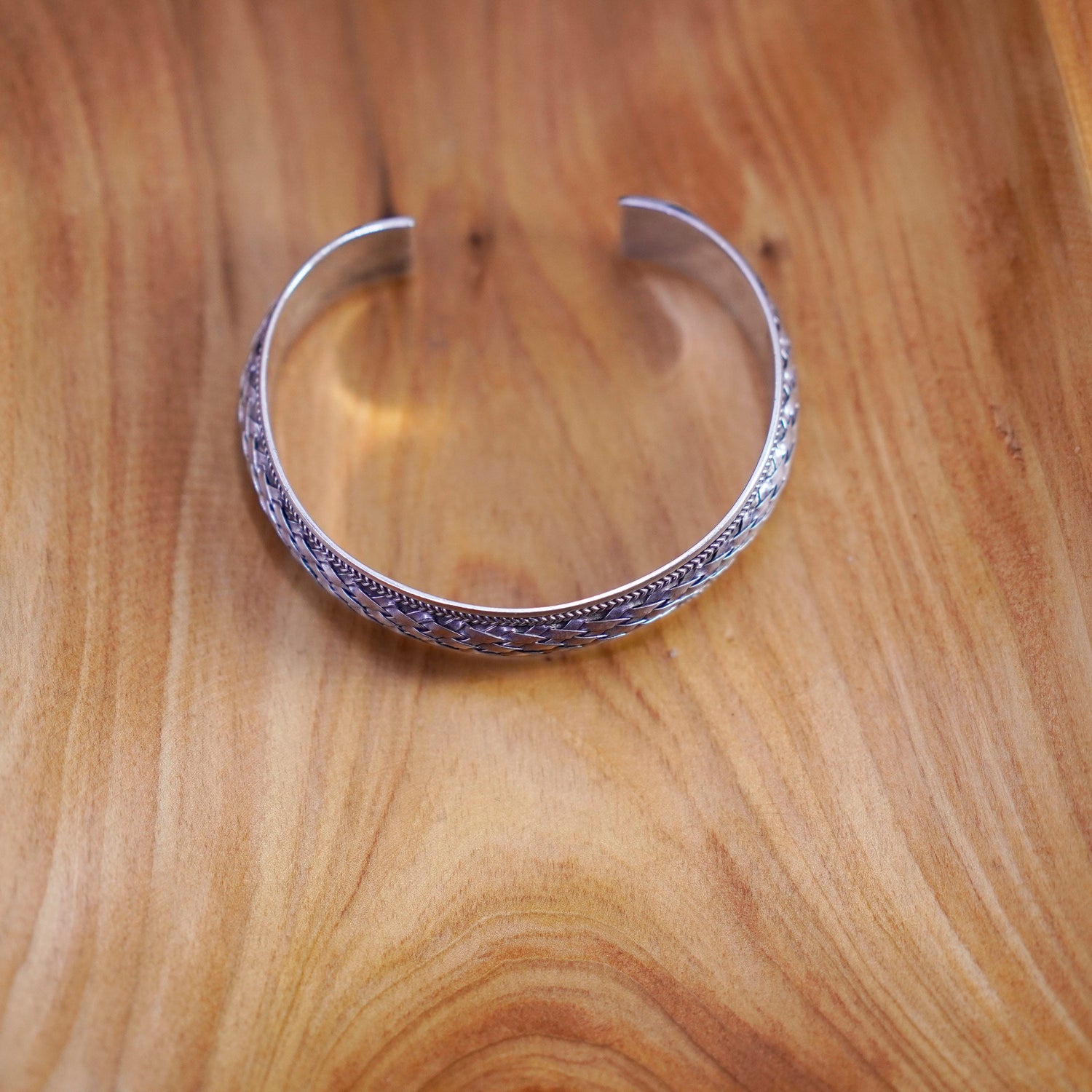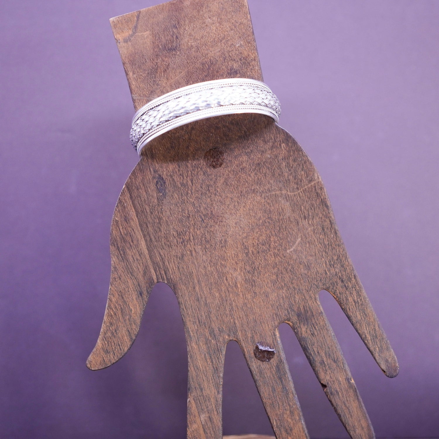 6.75”, Vintage Sterling silver handmade bracelet, 925 braided woven cable cuff
