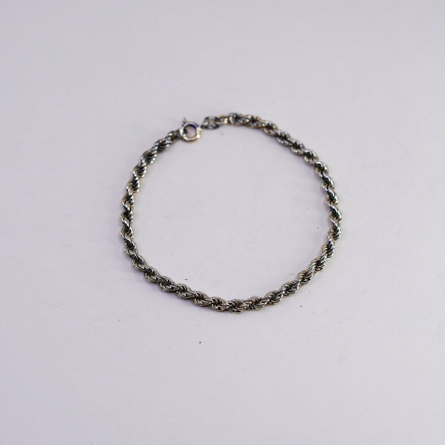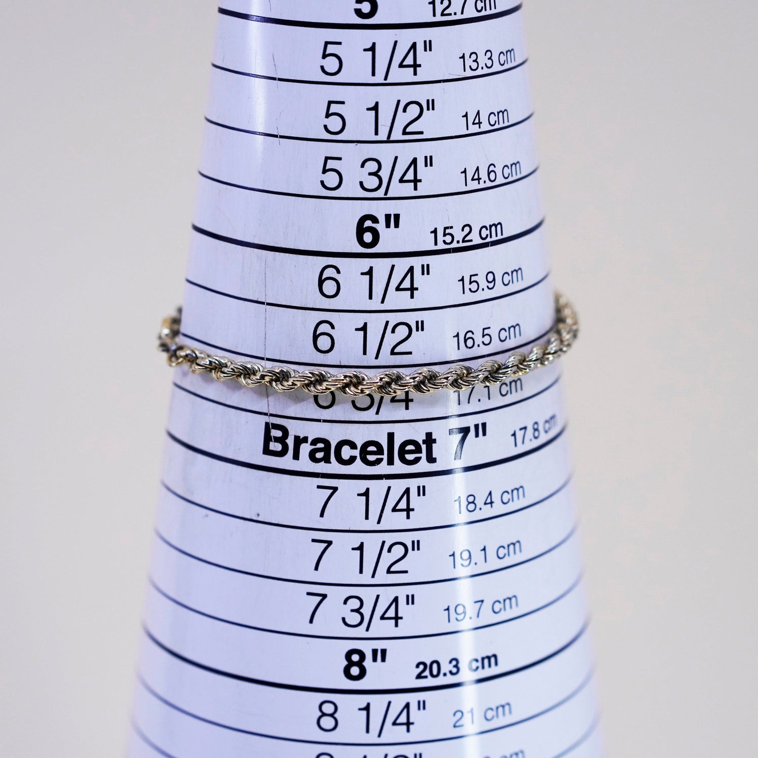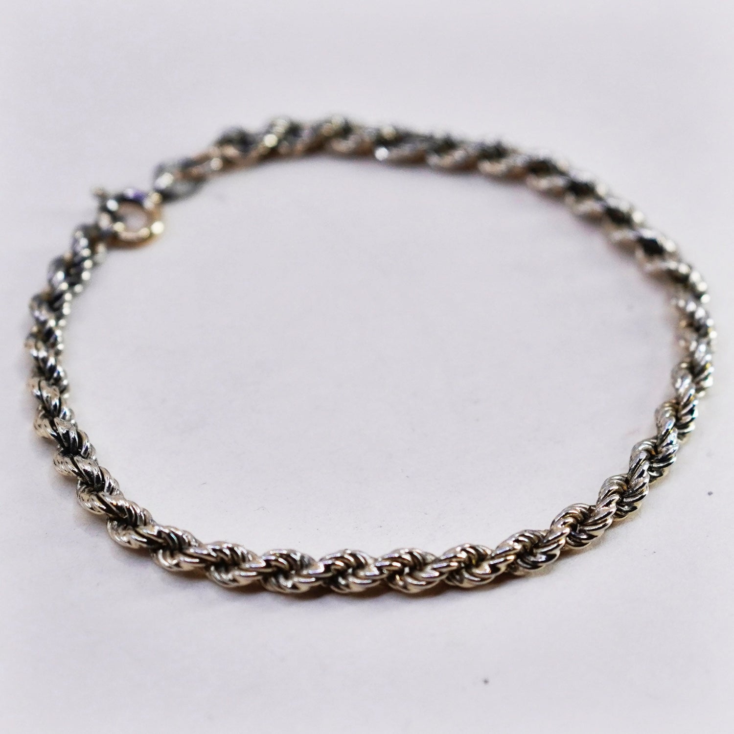 6.75”, Vintage vermeil gold over sterling 925 silver Italy rope chain bracelet