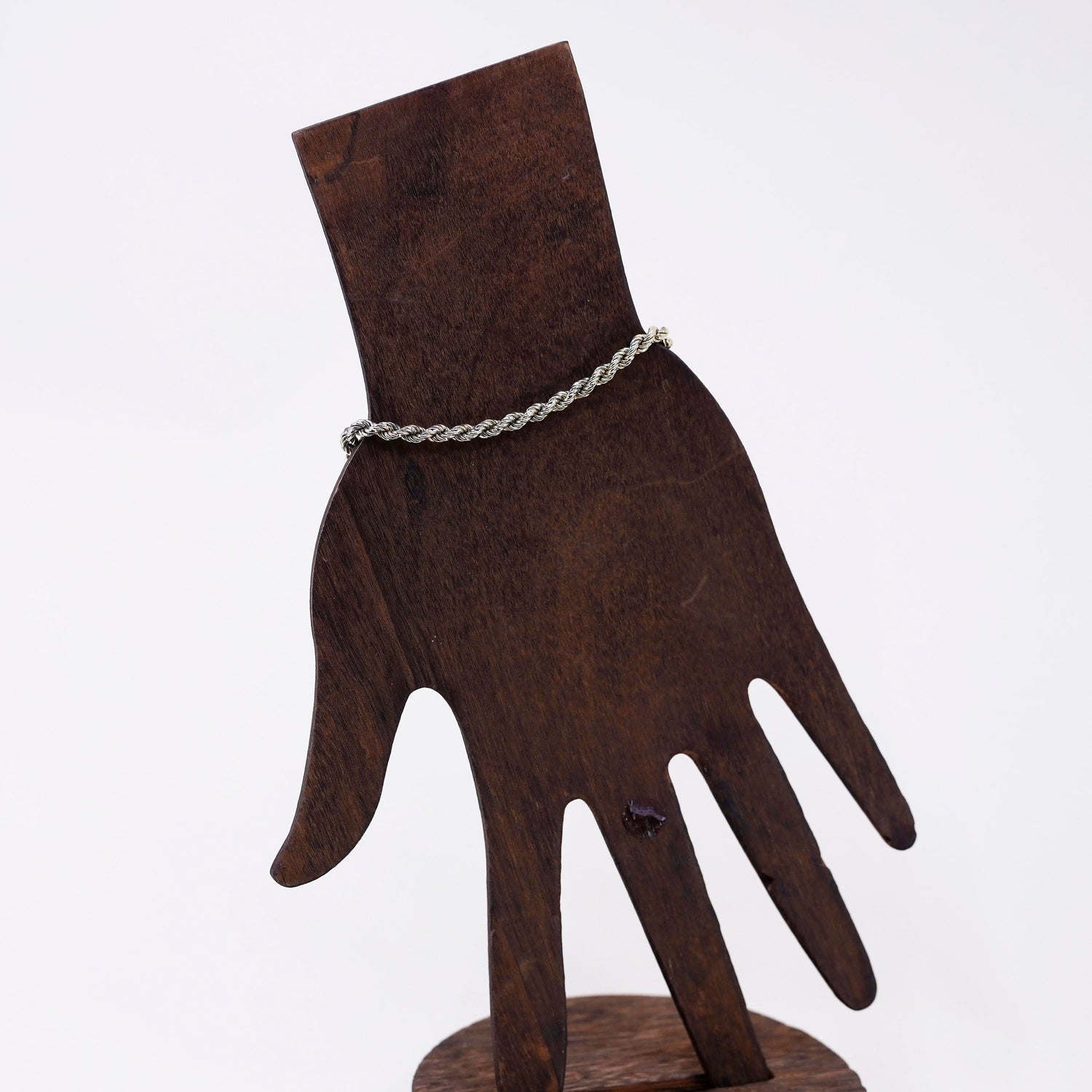 6.75", 4mm, Vintage vermeil gold over sterling 925 silver Italy rope chain bracelet, stamped 925 Italy