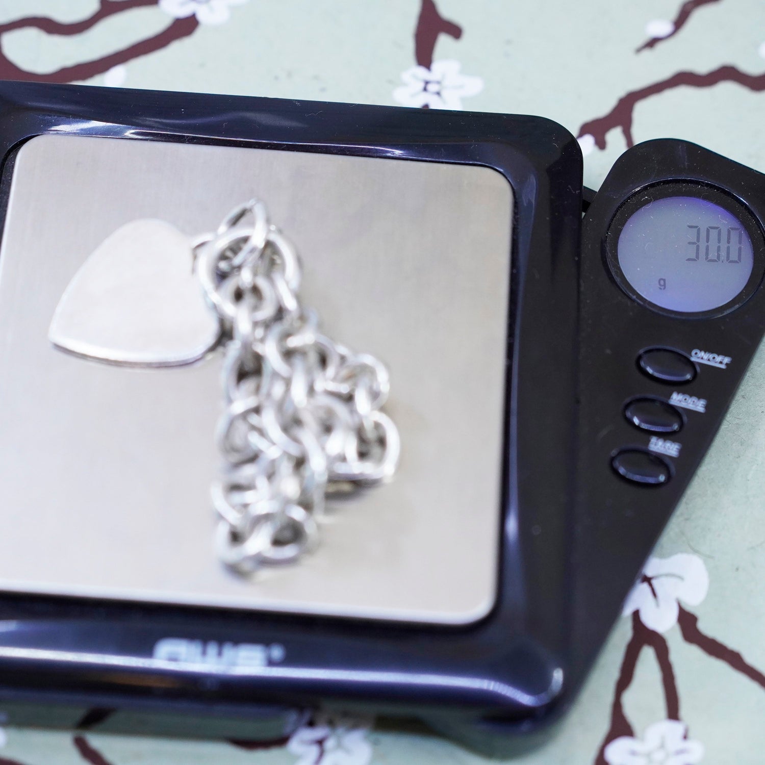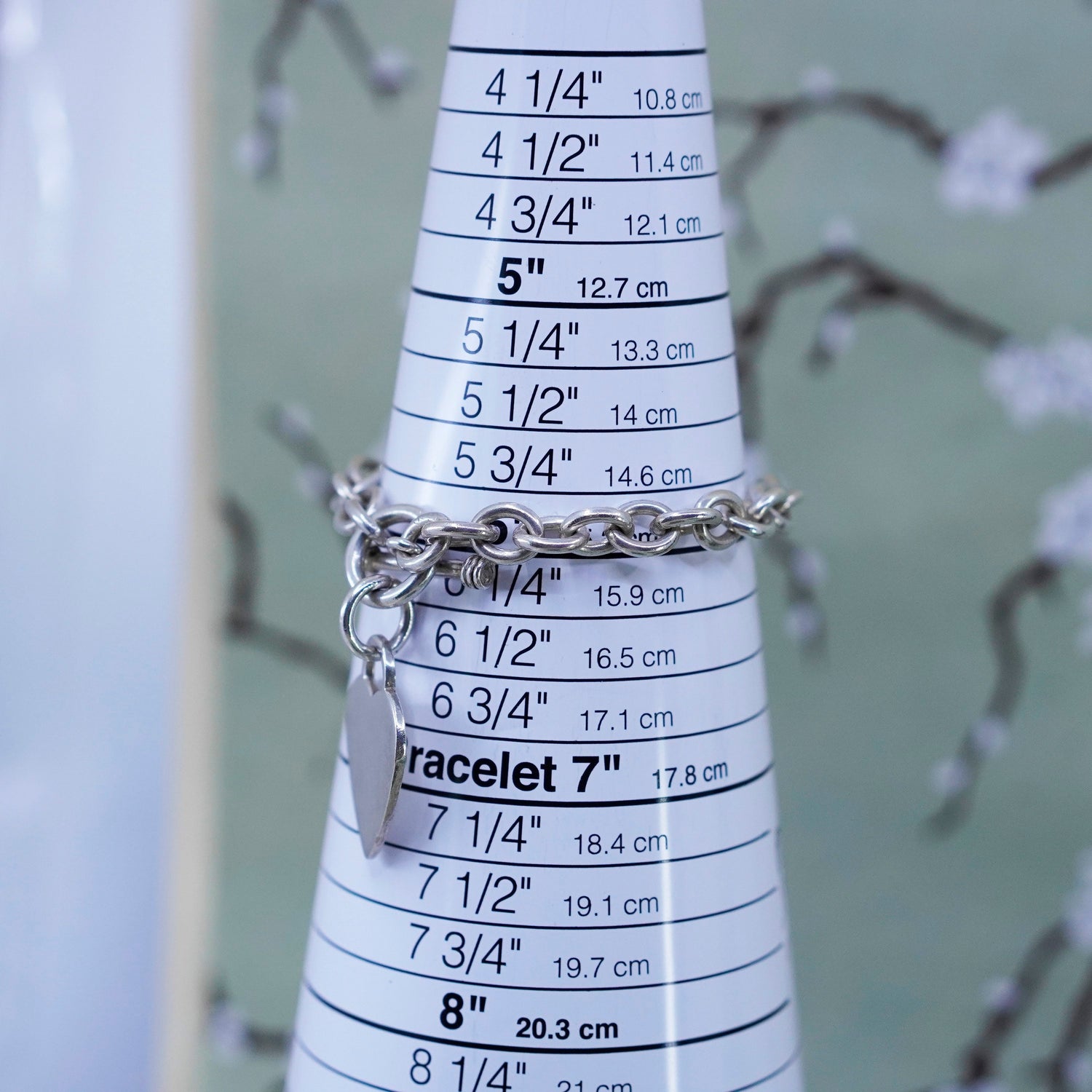 6”, Vintage sterling silver circle link bracelet, bold 925 chain w/ heart charm
