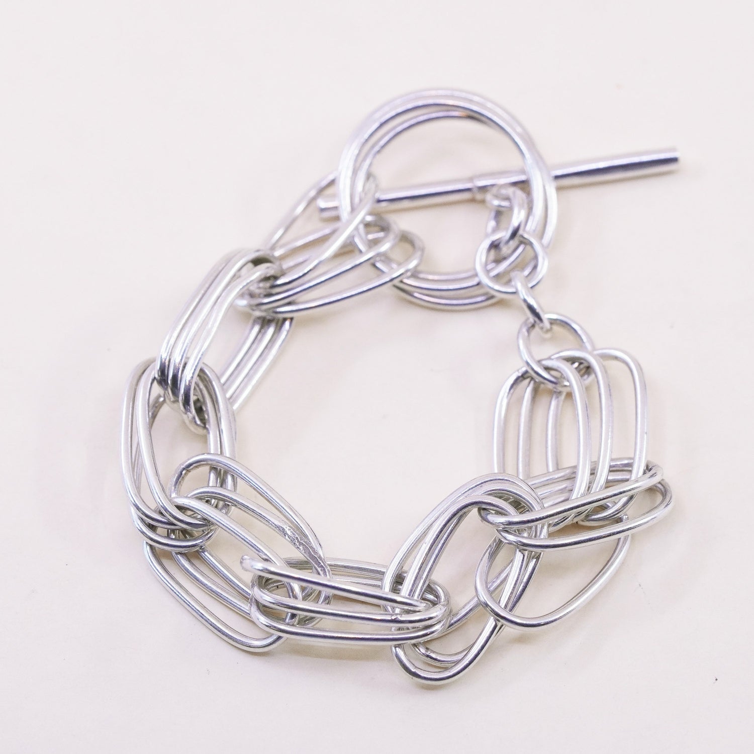 7", 14mm, Vintage sterling silver bracelet, multi strands oval link chain, stamped 925 Mexico