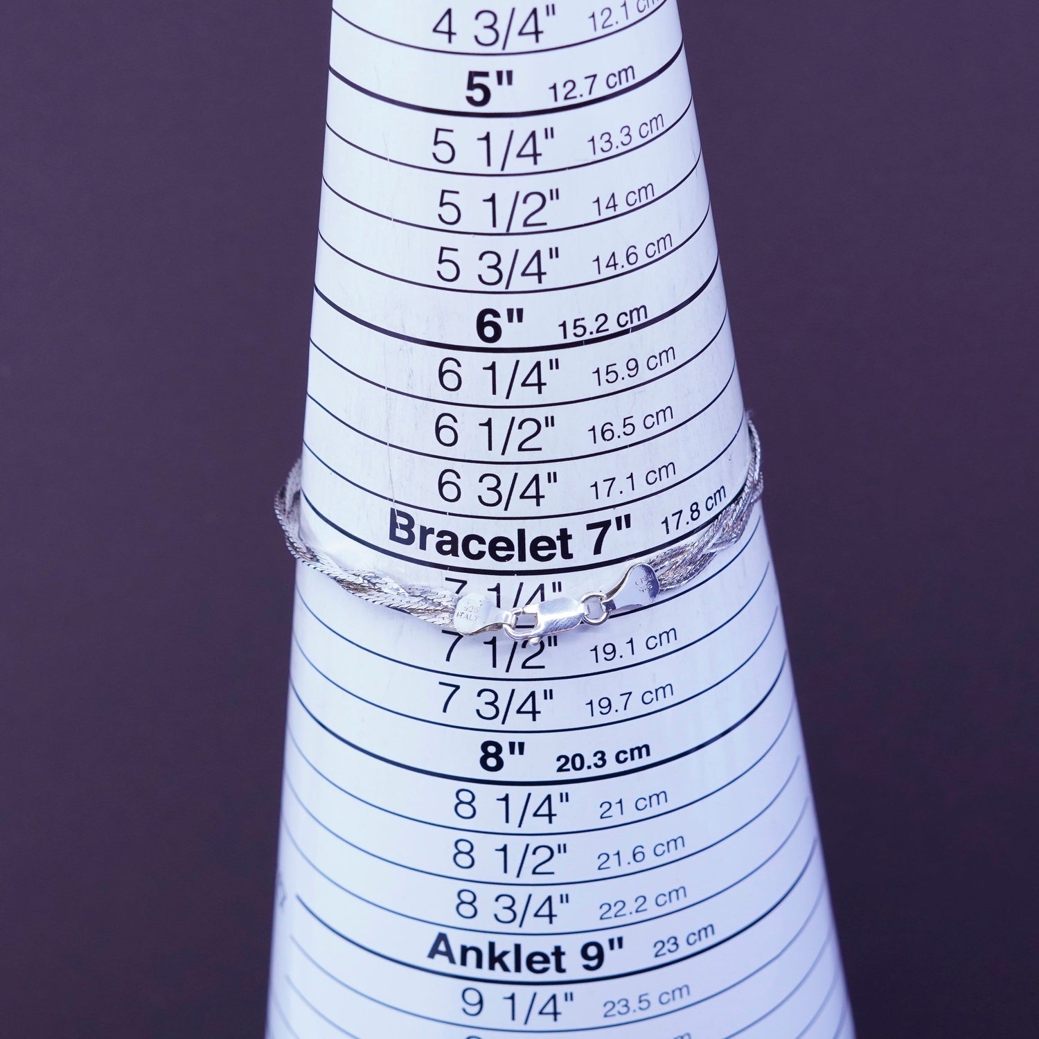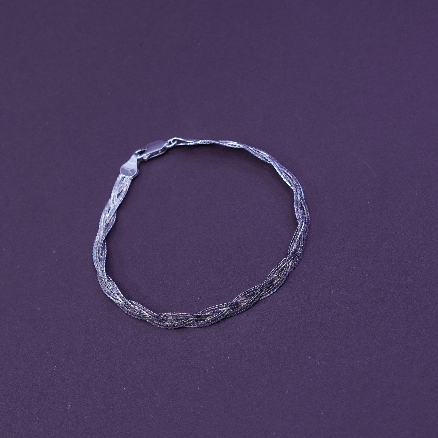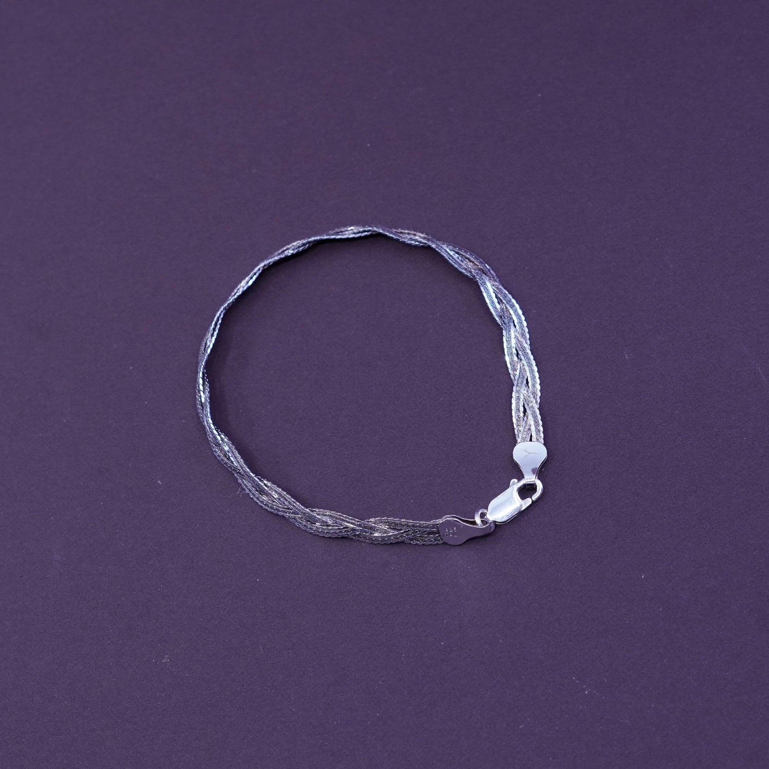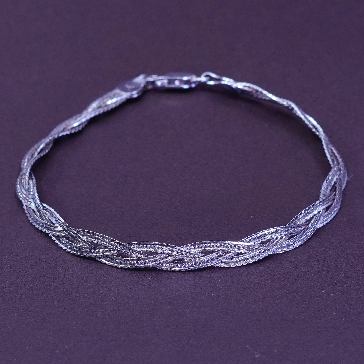 7.25”, Sterling silver braided woven herringbone chain, 3 strands 925 bracelet