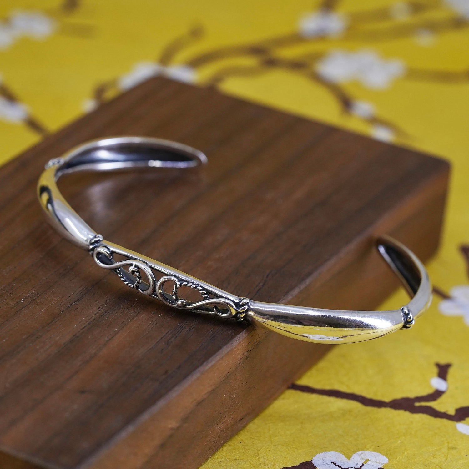 7.25", Vintage Carolyn pollack Sterling silver handmade bracelet, statement 925 filigree cuff, stamped 925 R