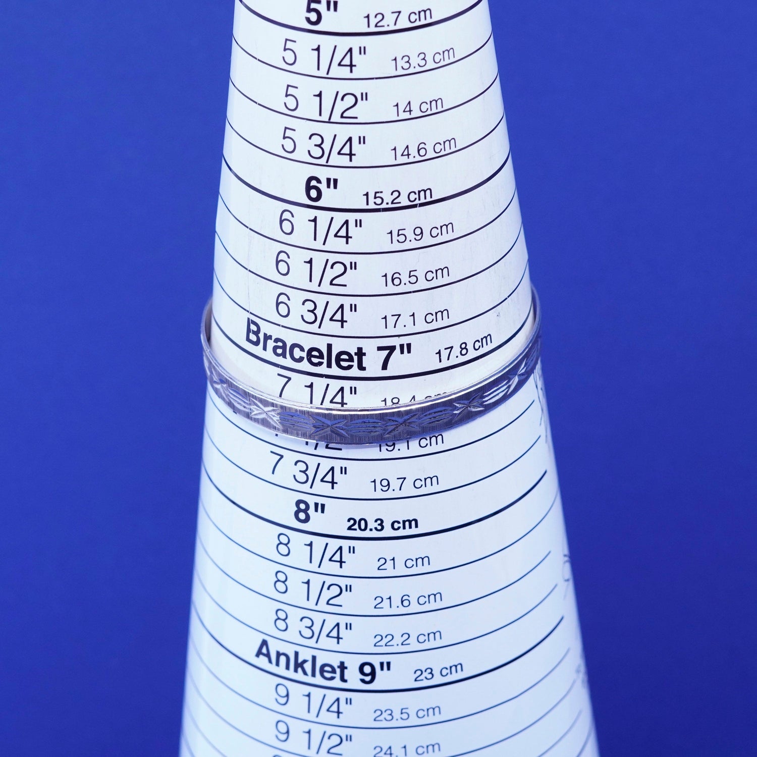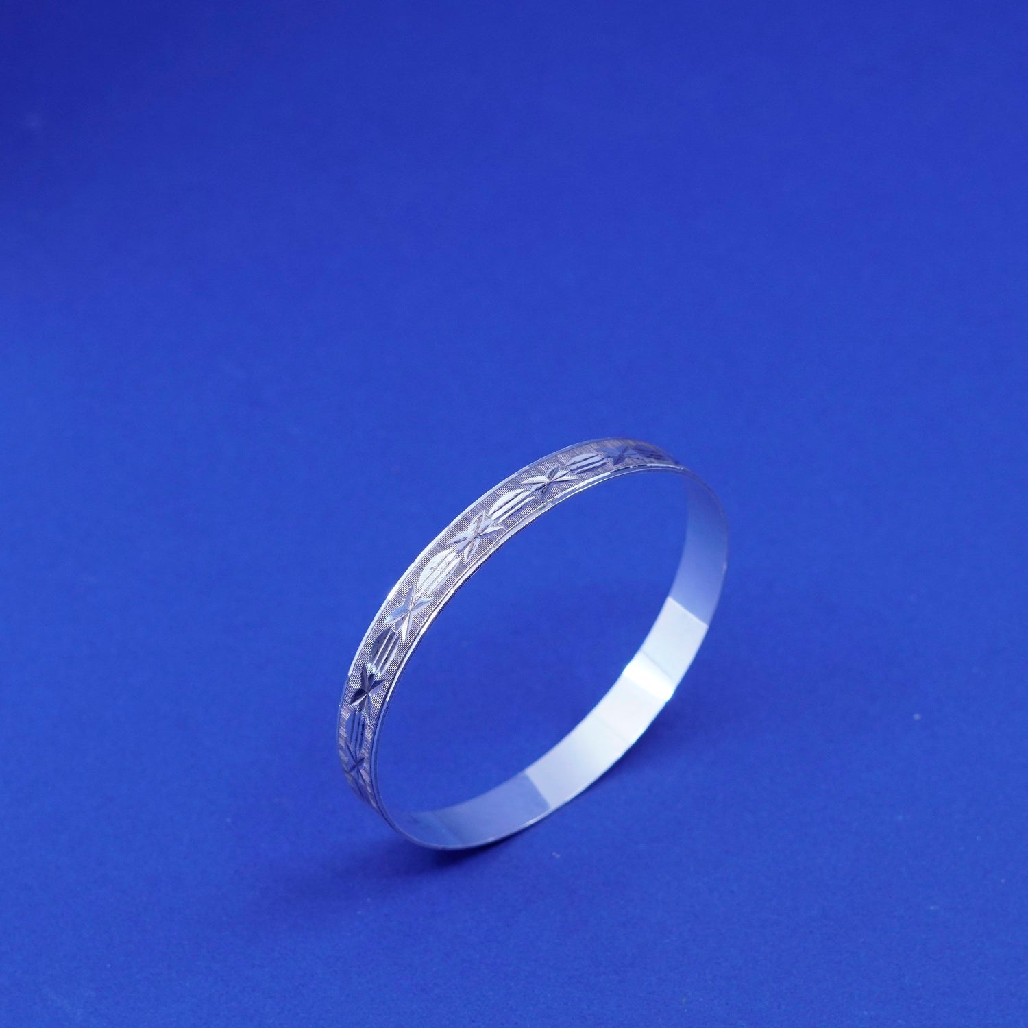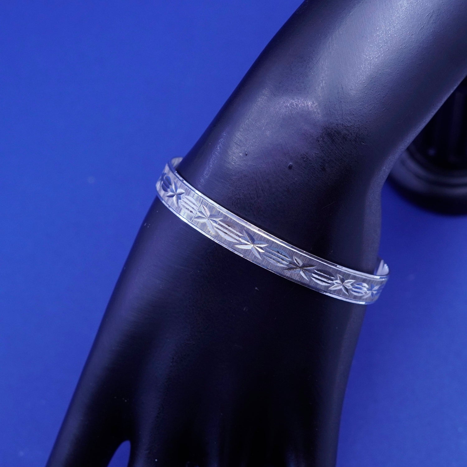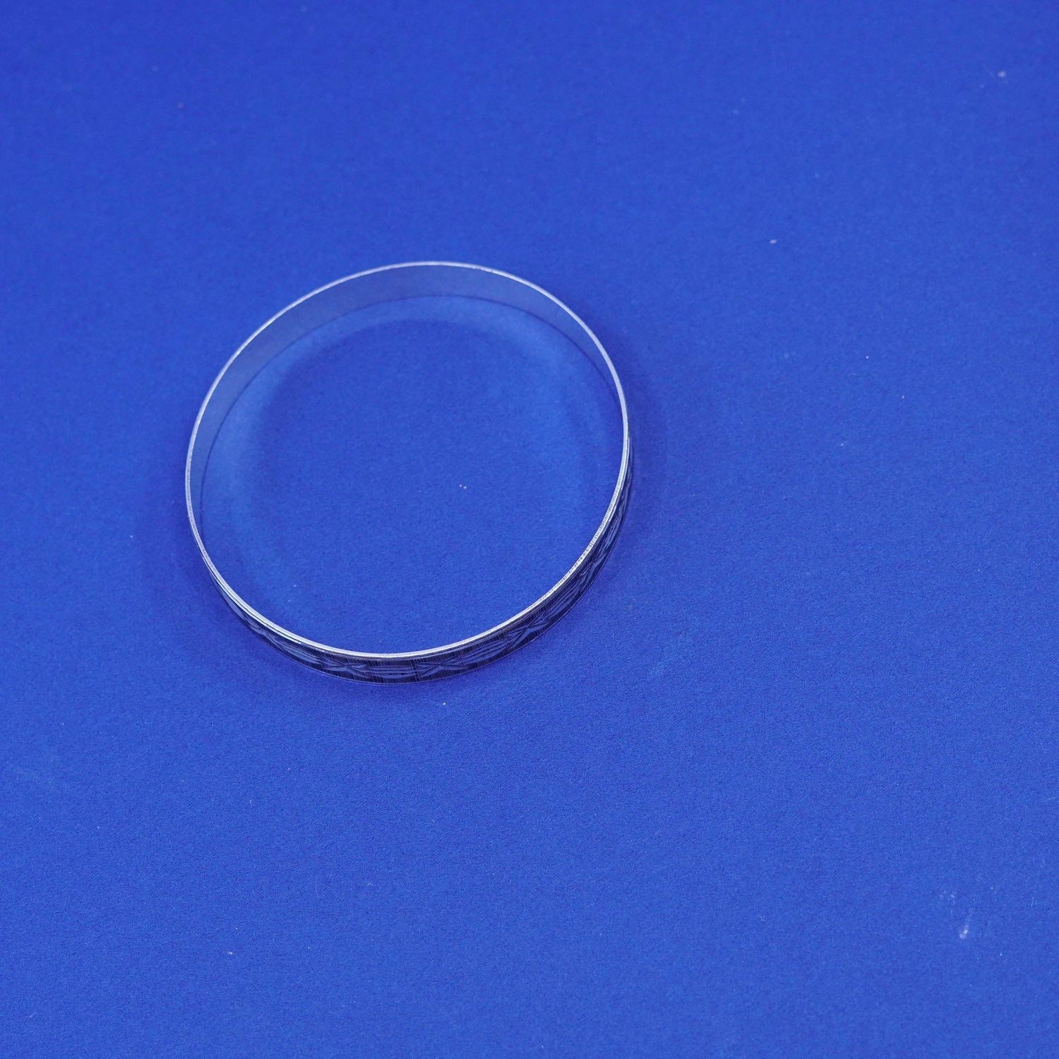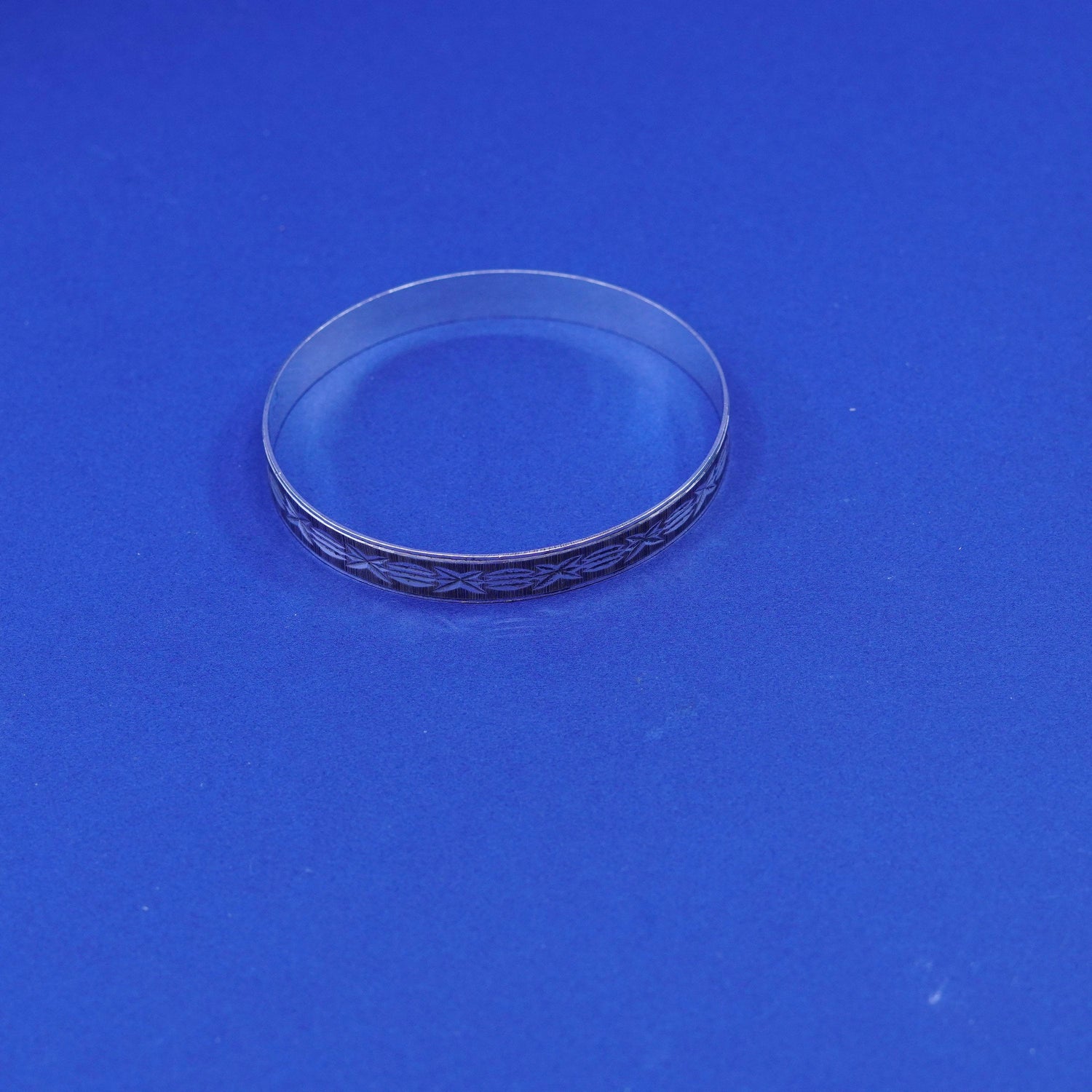 7.25”, vintage silver tone handmade bracelet, textured bangle
