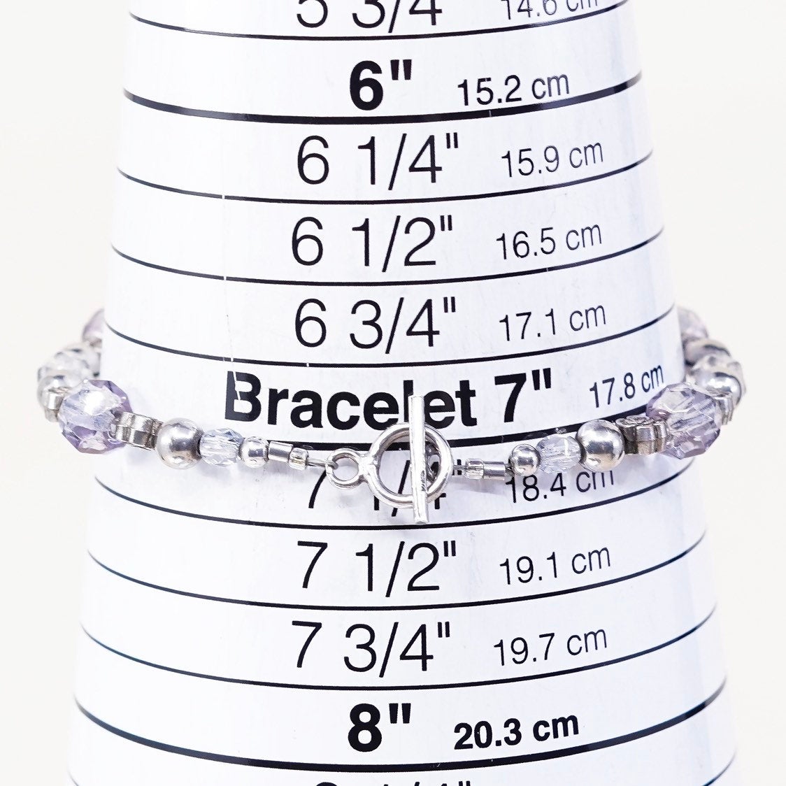 7.25", vintage sterling silver handmade bracelet, solid 925 silver beads with crystal beads and toggle closure, stamped 925