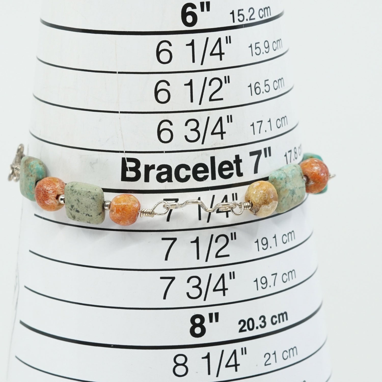 7.25", Vintage Sterling silver handmade bracelet, Mexico 925 silver with turquoise and coral, stamped 925
