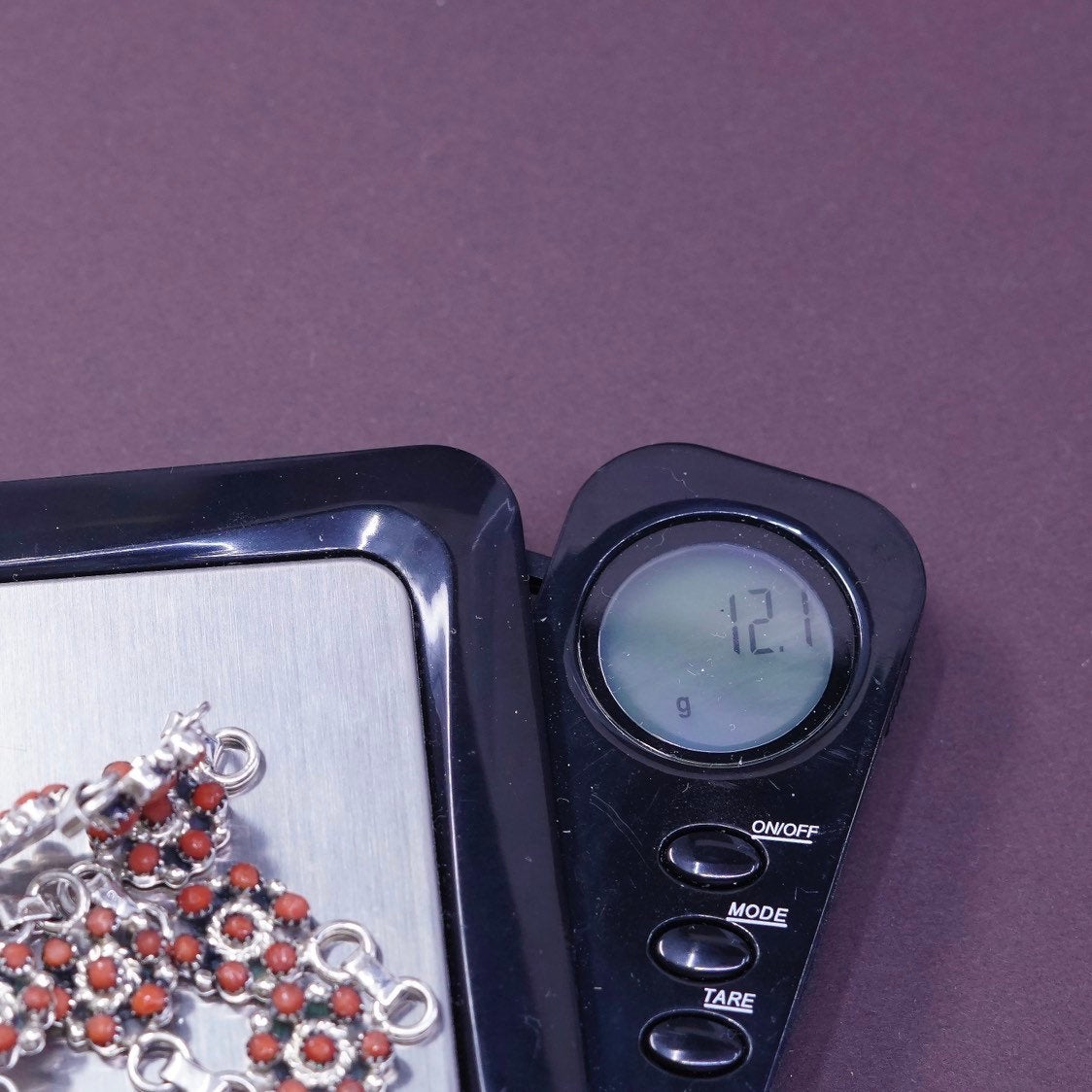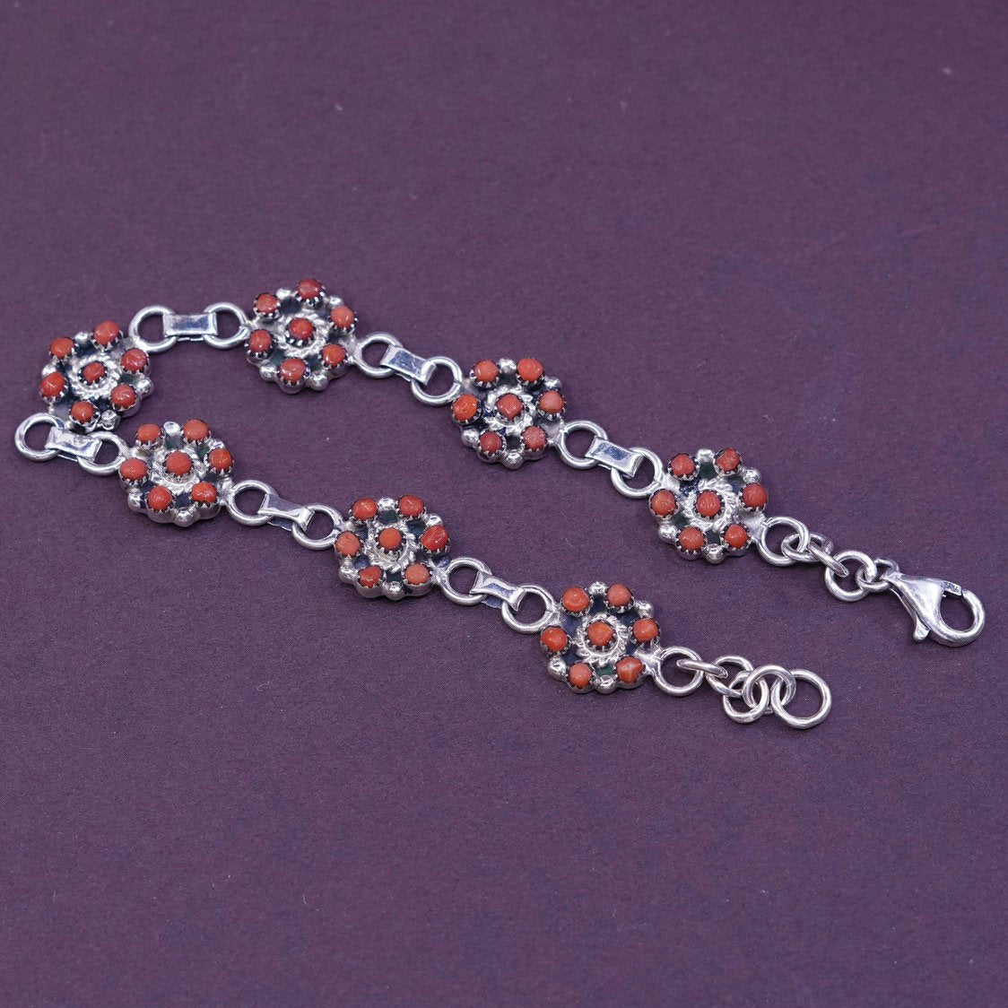 7.5", Native American Mary Sterling silver bracelet, navajo 925 flower w/ coral