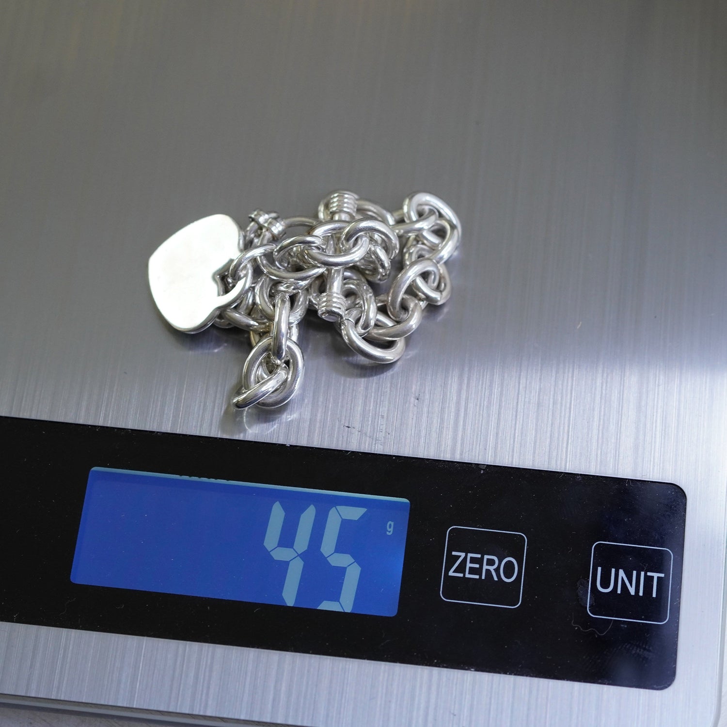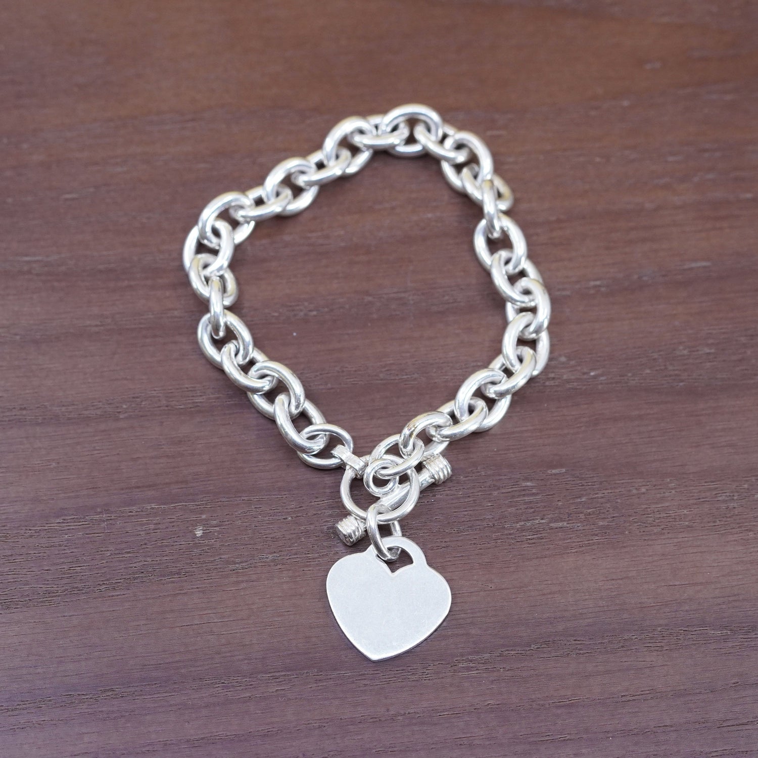 7.5", Sterling silver handmade bracelet, 925 bold oval chain w/ heart tag charm