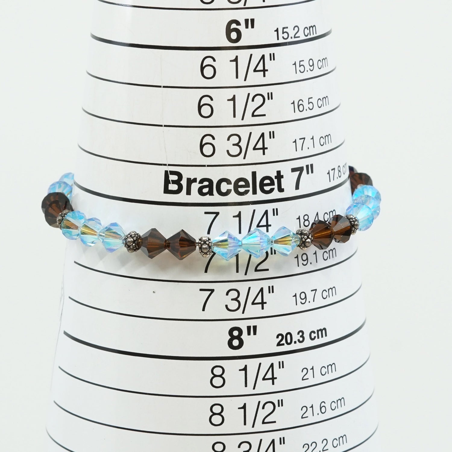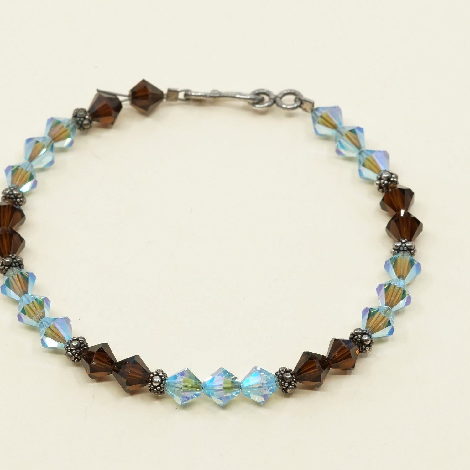 7.5", Vintage Sterling silver handmade bracelet, with brown and blue Swarovski crystal, stamped 925