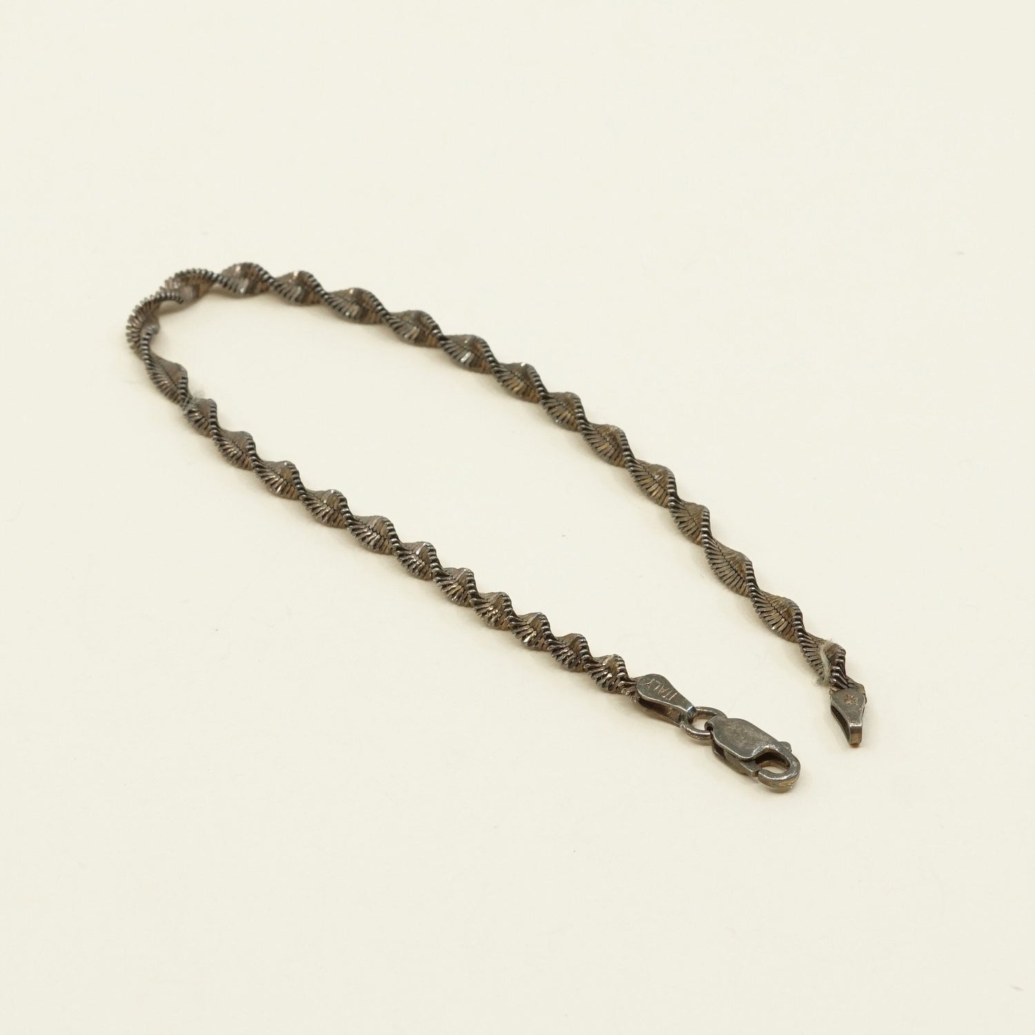 7", 5mm, Vintage sterling silver bracelet, solid 925 silver twisted herringbone chain, stamped Italy 925