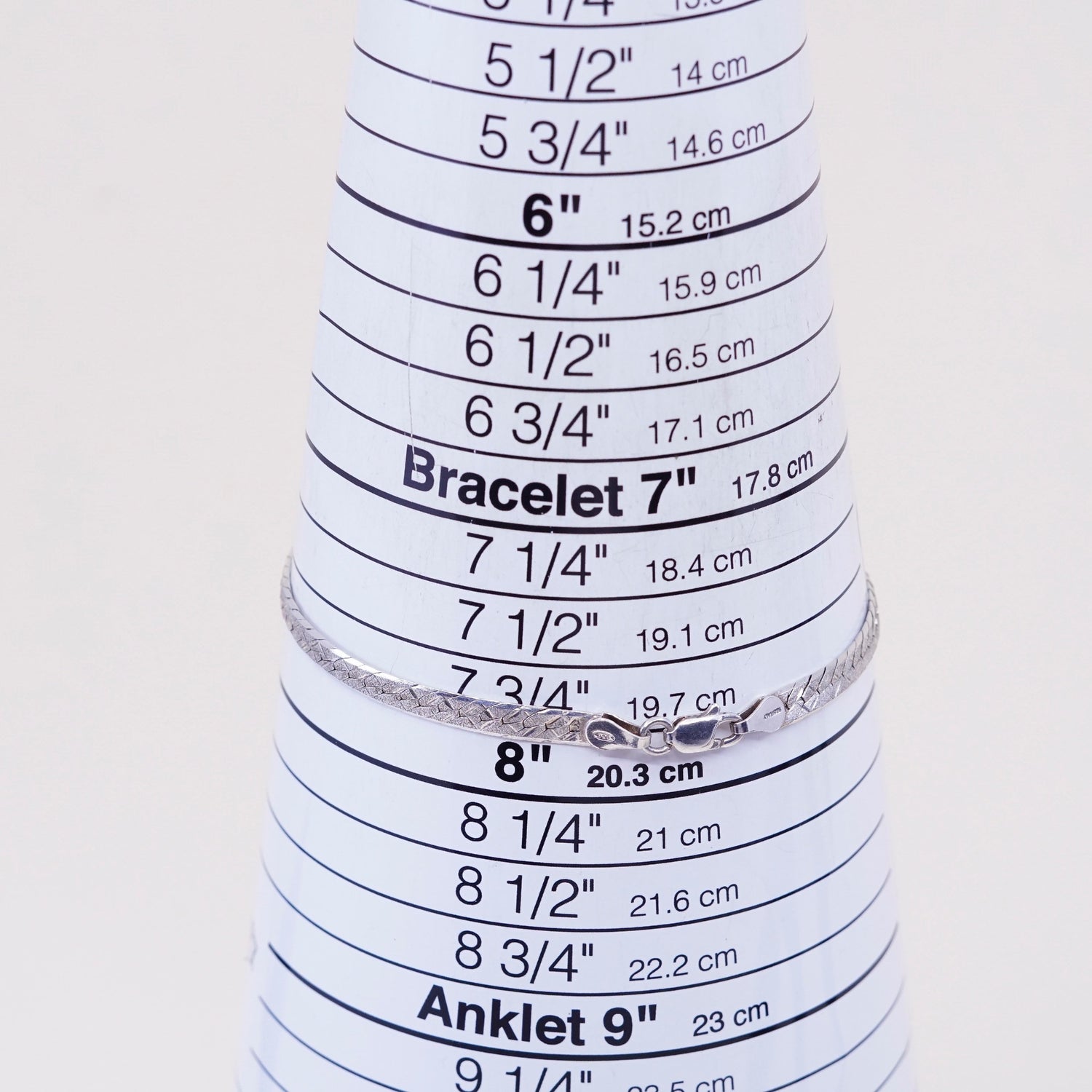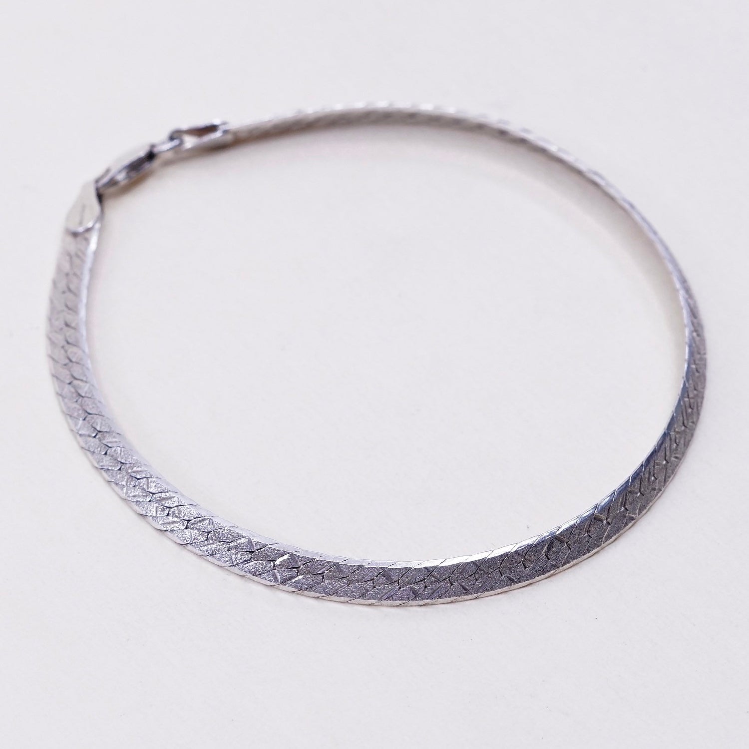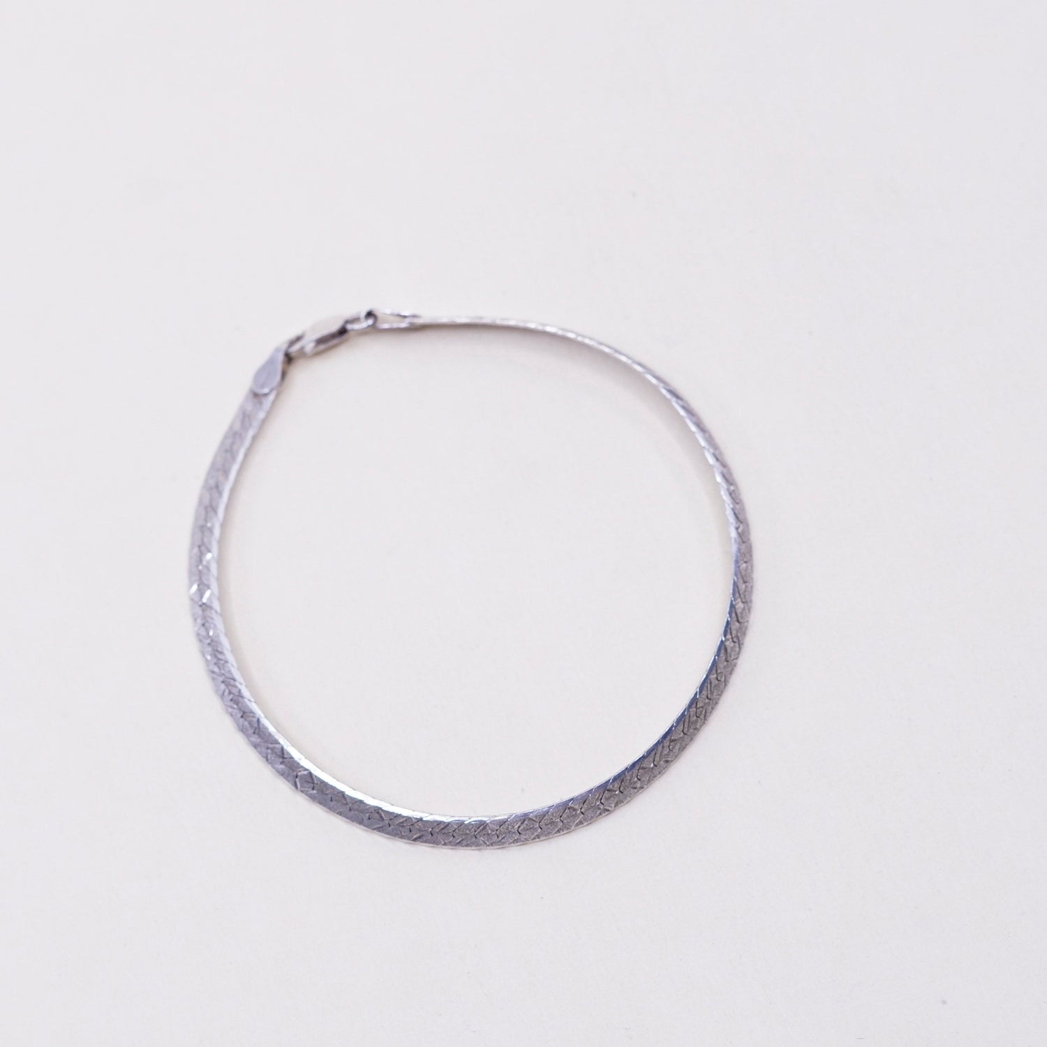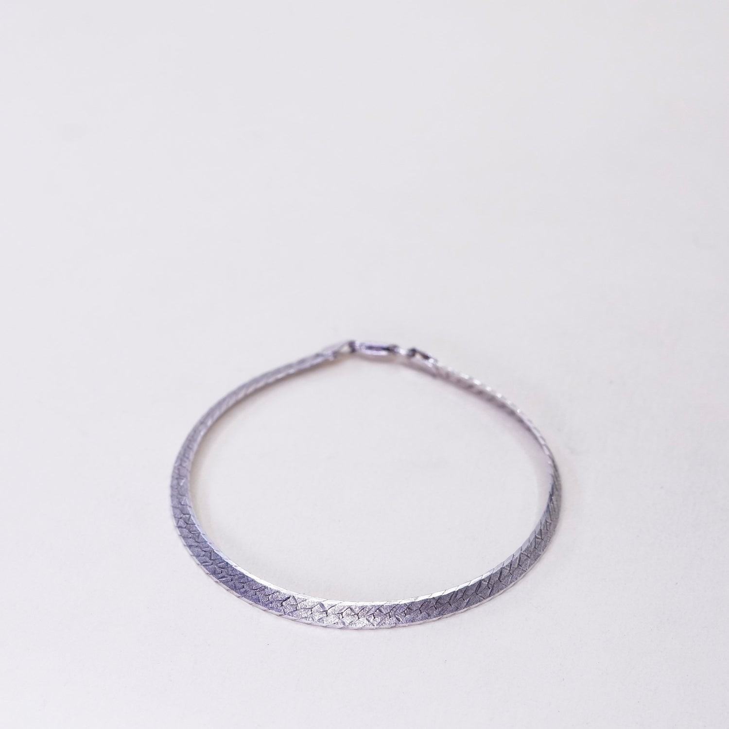 7.75”, 5mm, vtg sterling silver textured herringbone bracelet, Italy 925 chain
