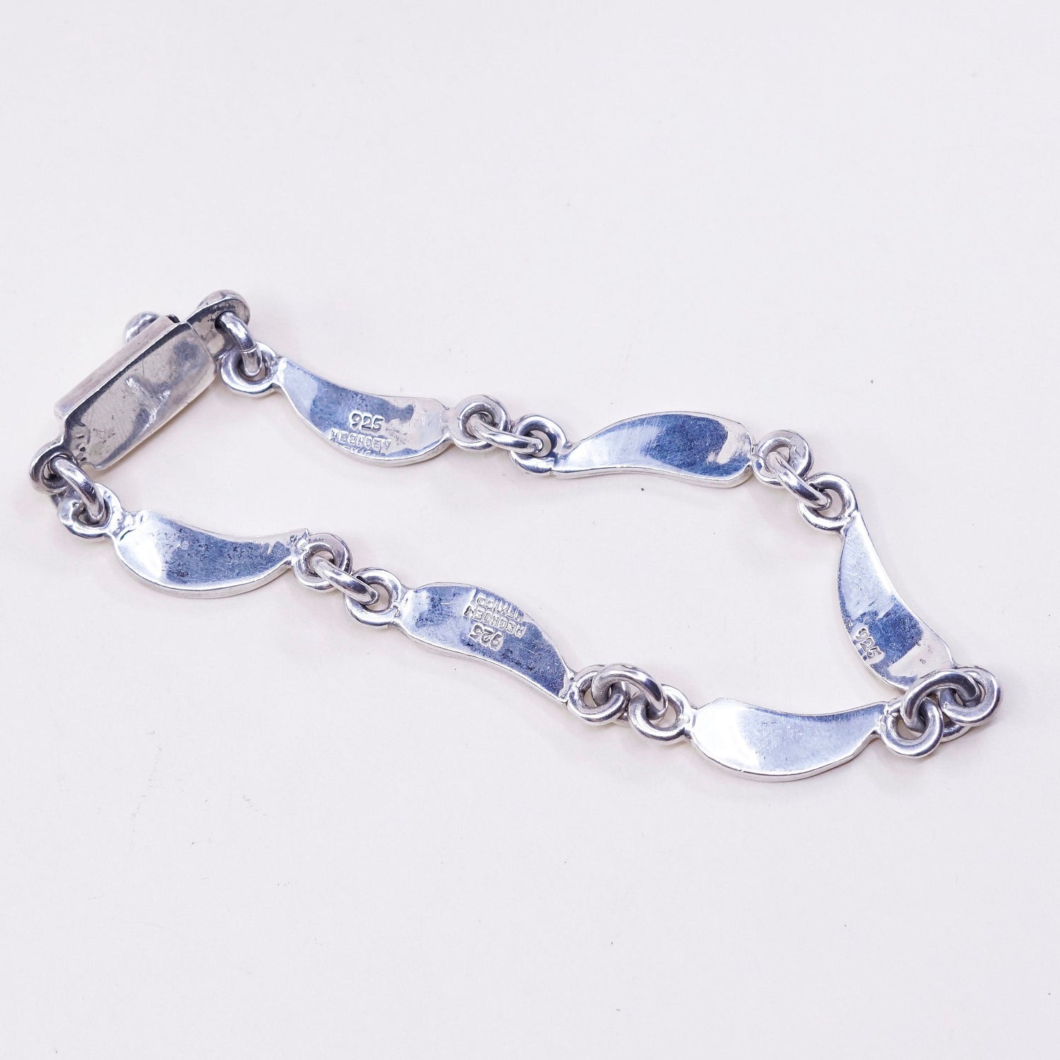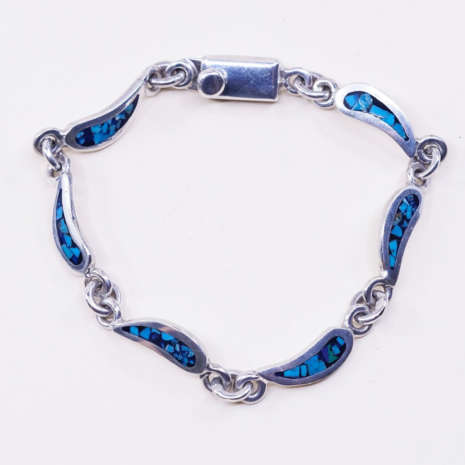 7.75", mexico hecho en Sterling silver bracelet, 925 teardrop link with turquoise inlay, stamped Mexico 925 hechoen