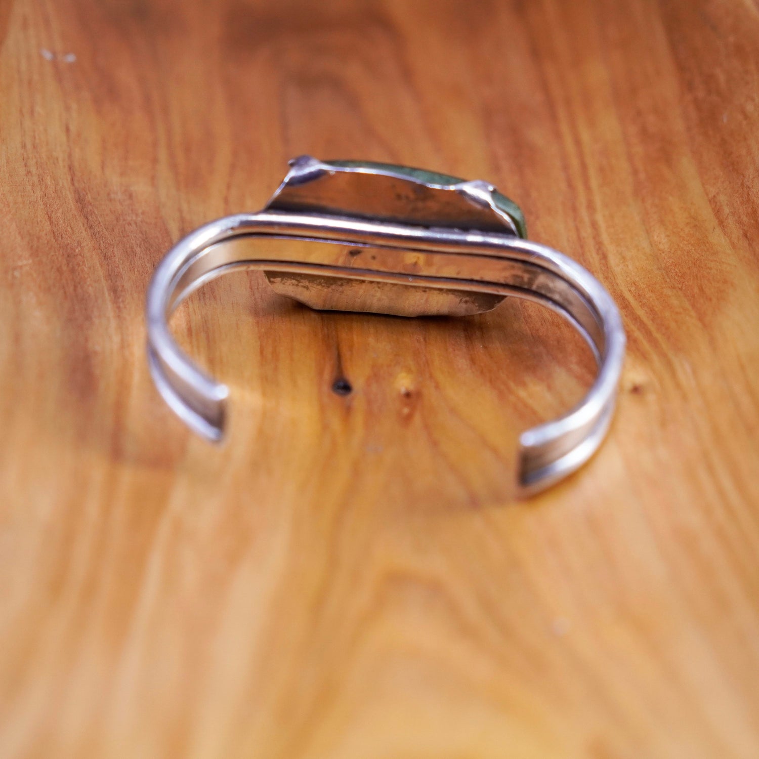 7", antique sterling silver handmade bracelet, 925 cuff with green agate, silver tested