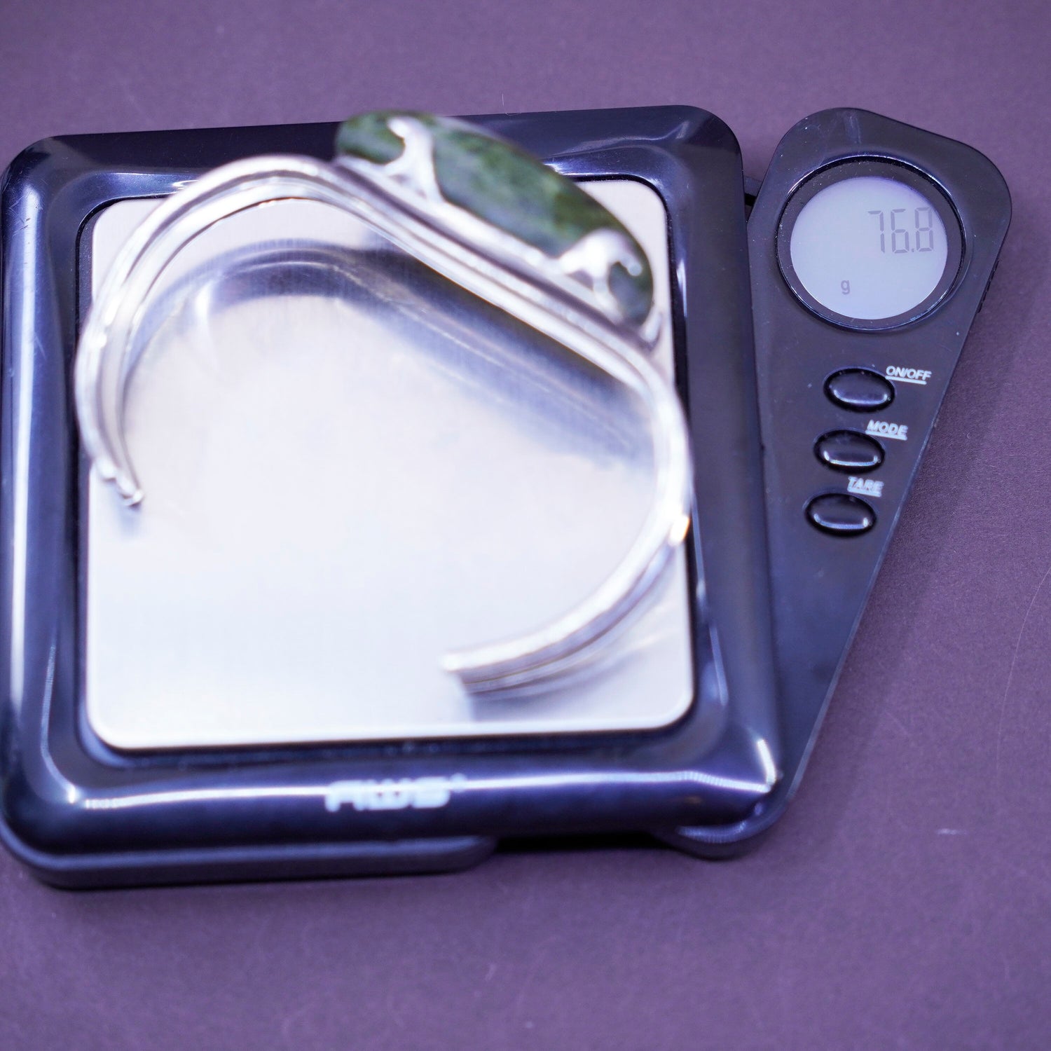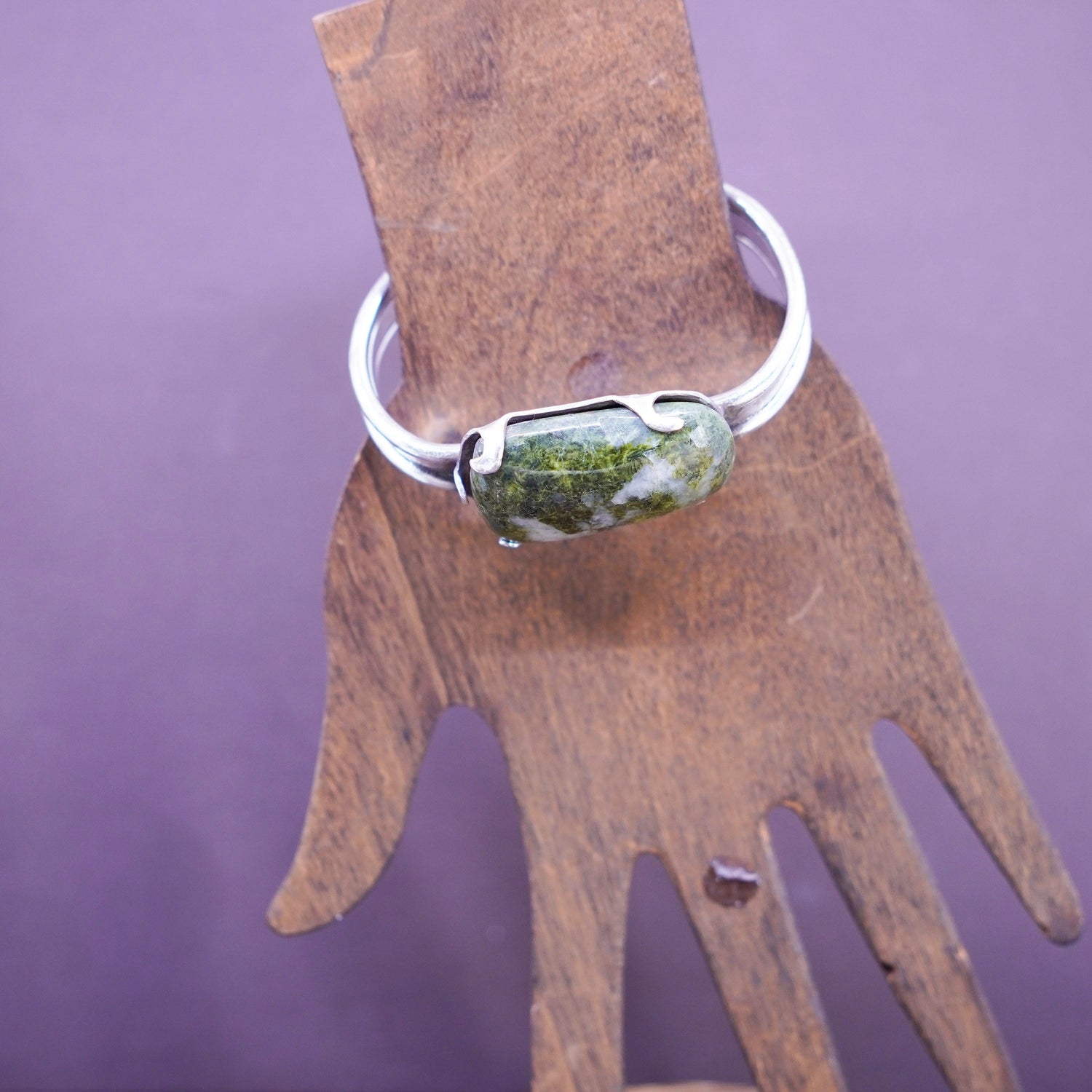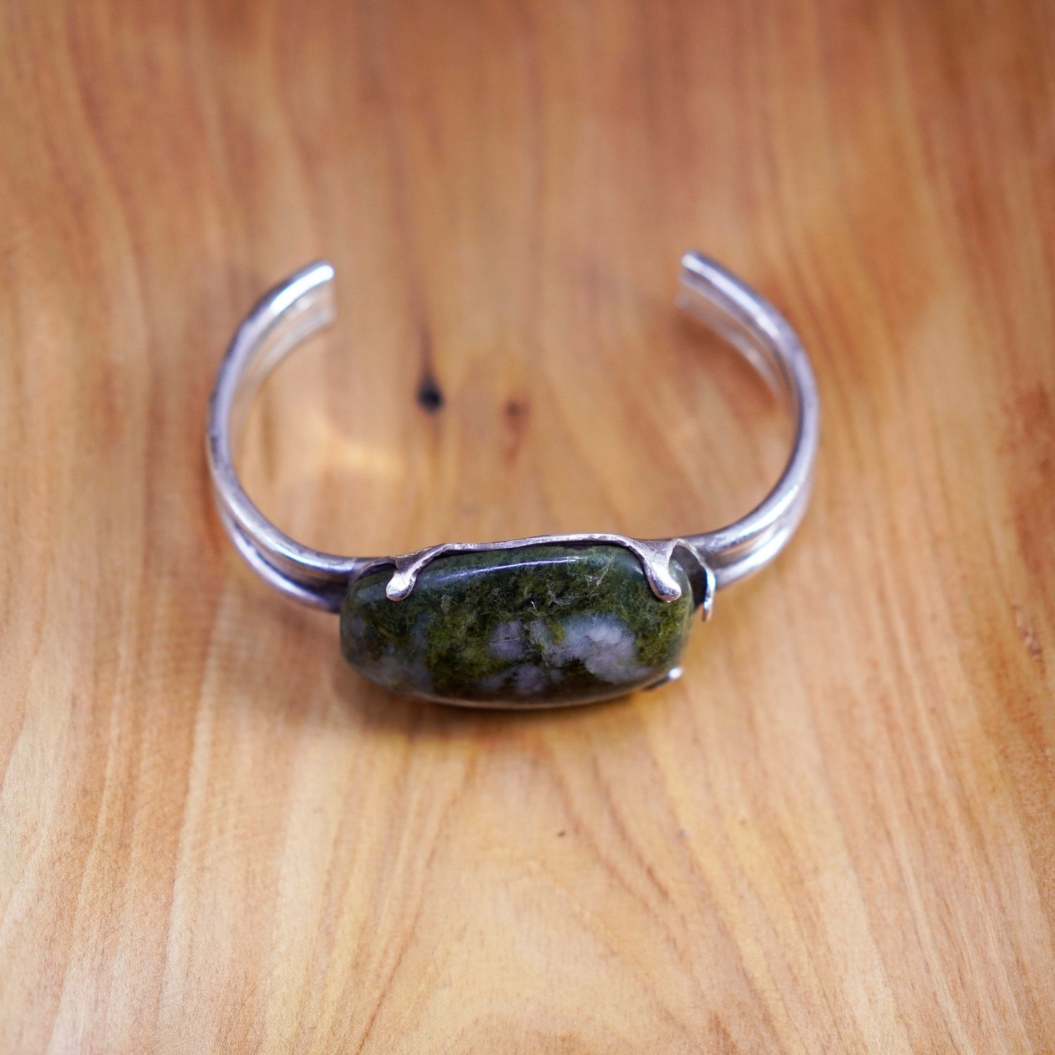 7”, antique sterling silver handmade bracelet, 925 cuff with green agate