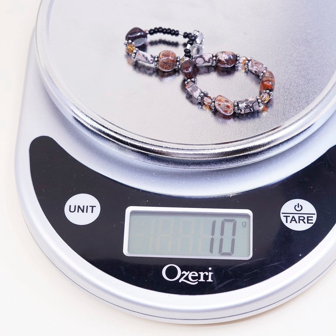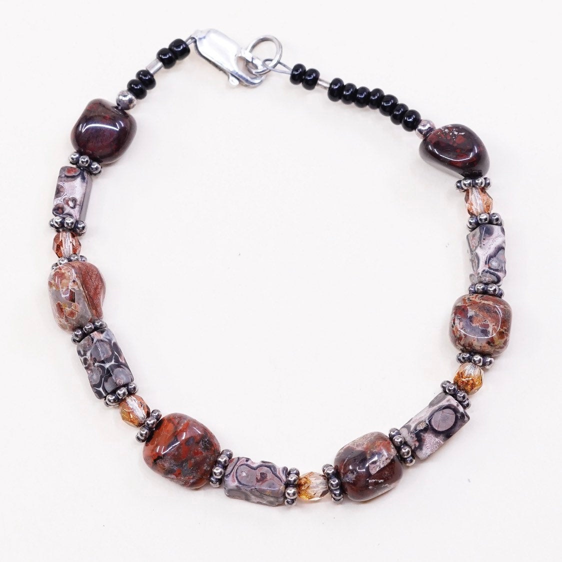 7", handmade vintage Jasper beads bracelet, with Sterling silver closure