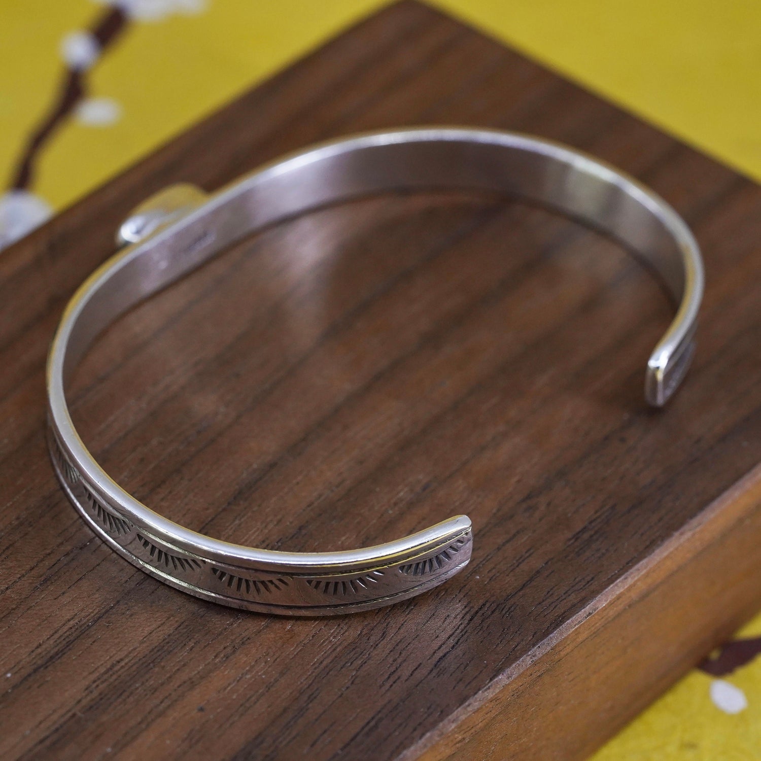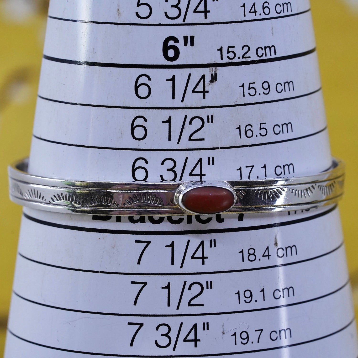 7” Native American Sterling silver bracelet, jewelry, textured 925 cuff coral