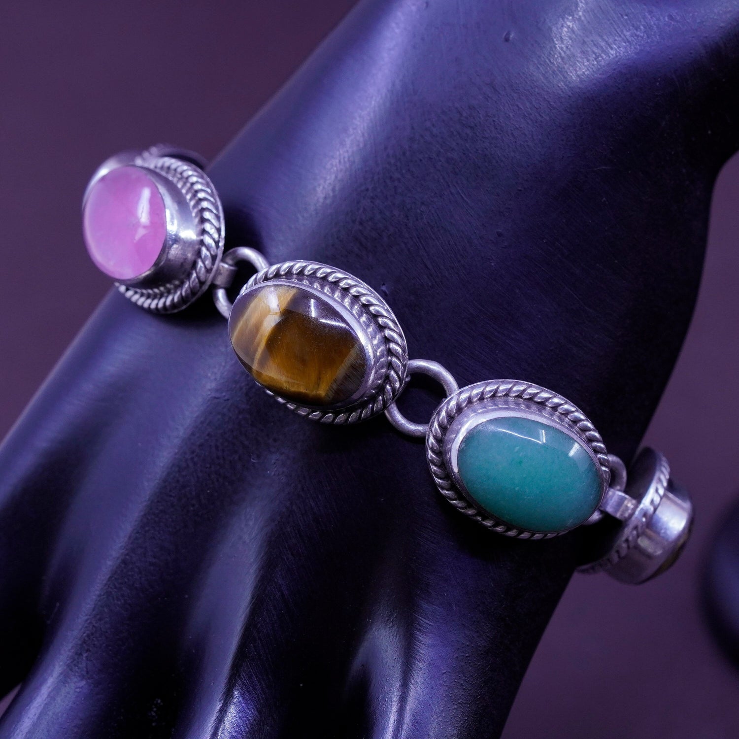 7”, sterling 925 silver bracelet tiger eye jasper sodalite jade quartz obsidian